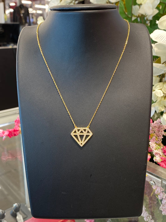 Silver Gold Plaited Chain With Diamond Shaped Pendant