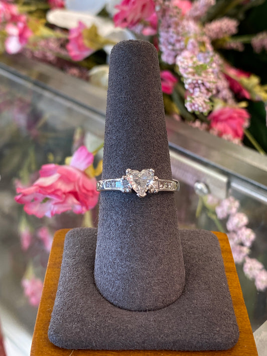 14k White Gold Heart Diamond Engagement Ring