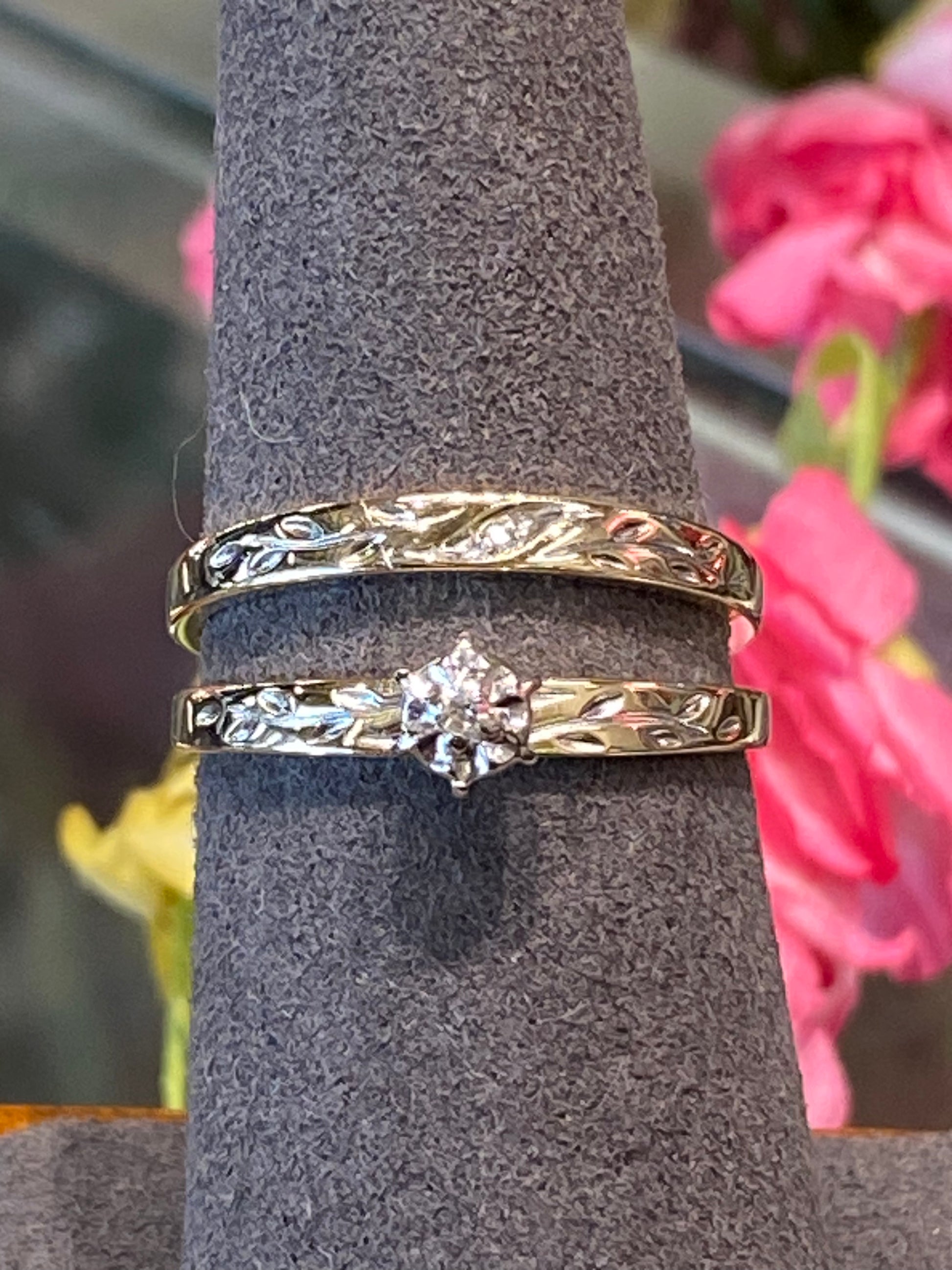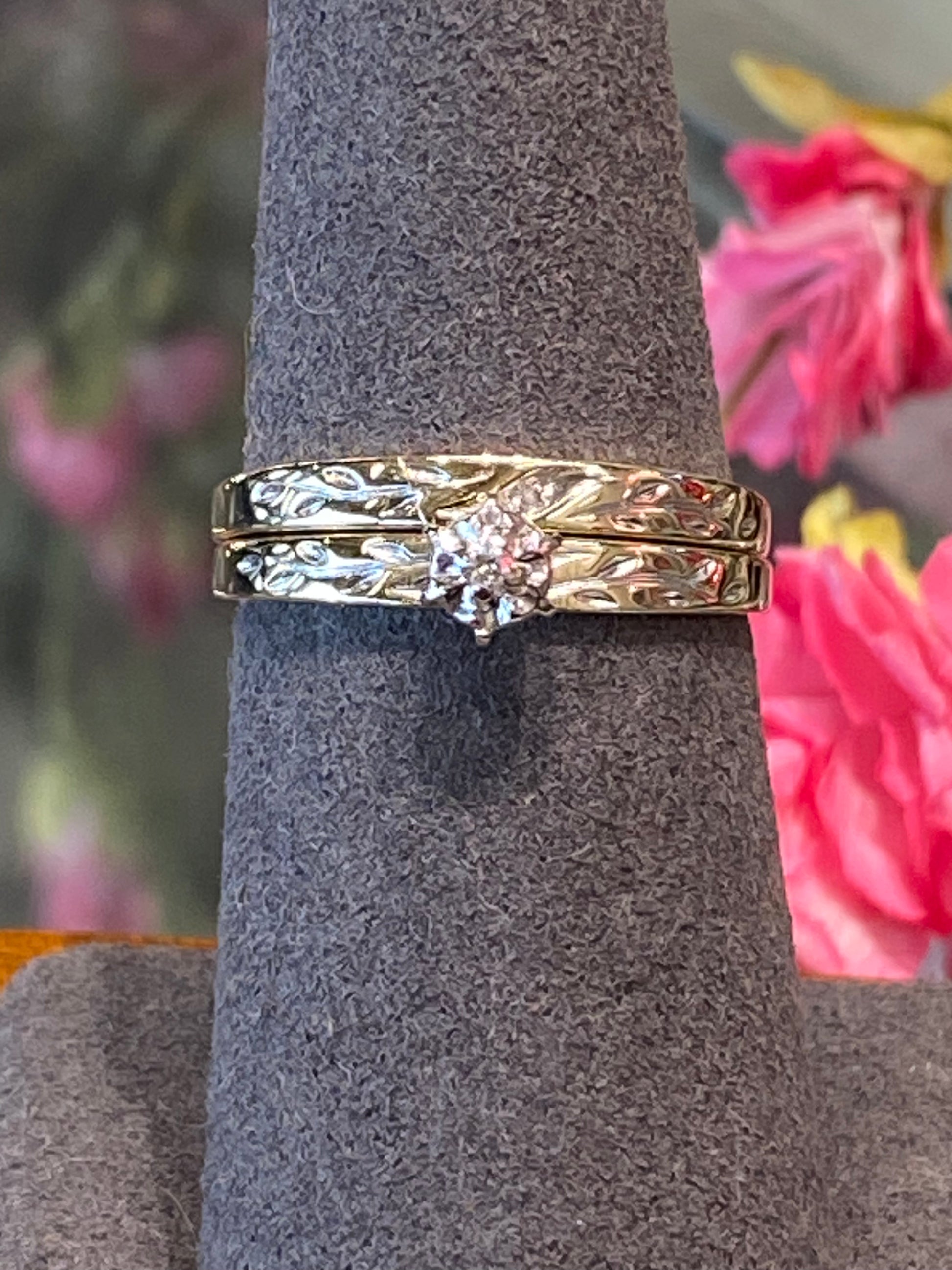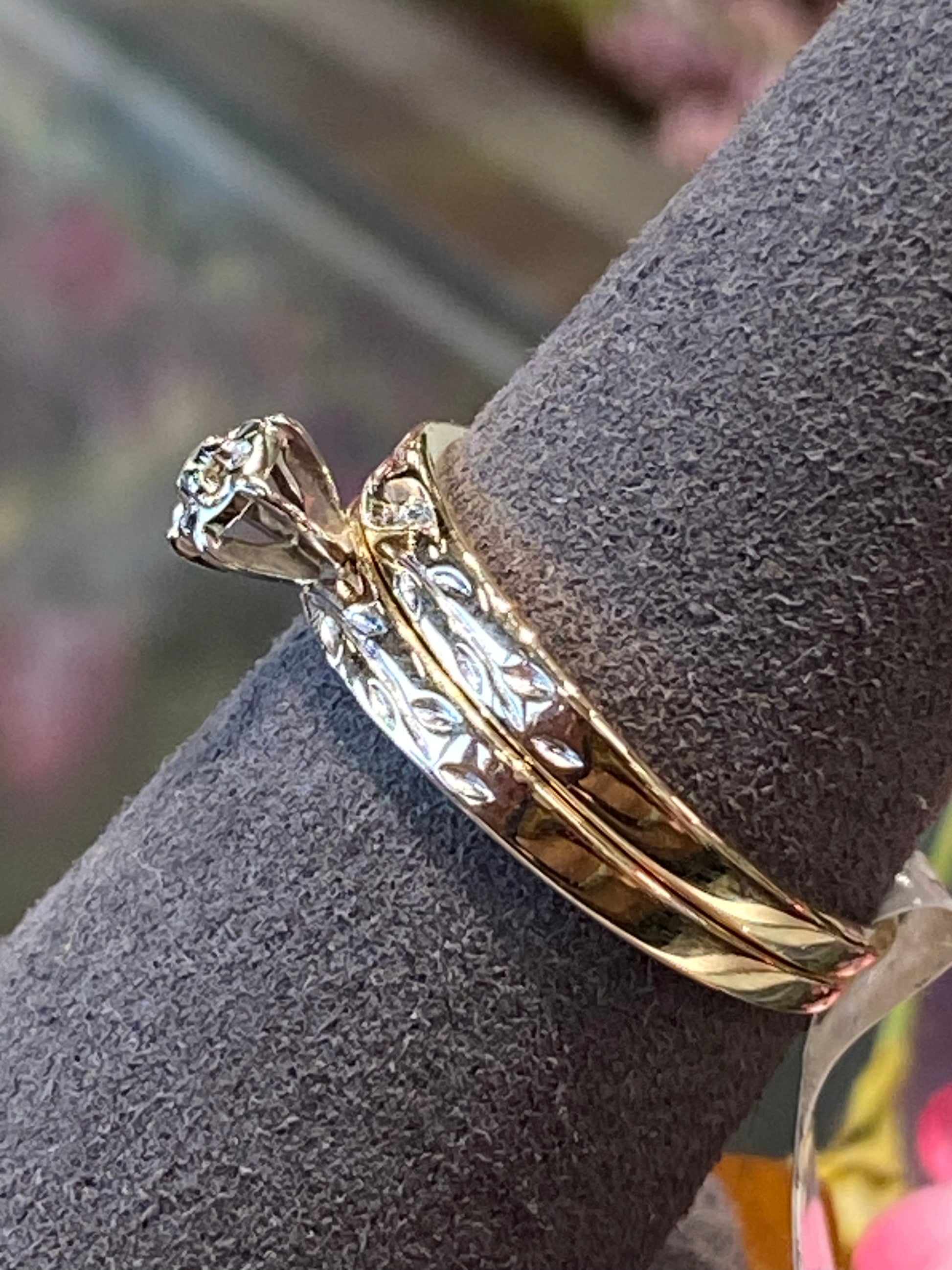 2.7 Grams Of 10k Two Tone Gold Wedding Set With 0.03CTW Of Diamonds. . Ring Is A Size 7