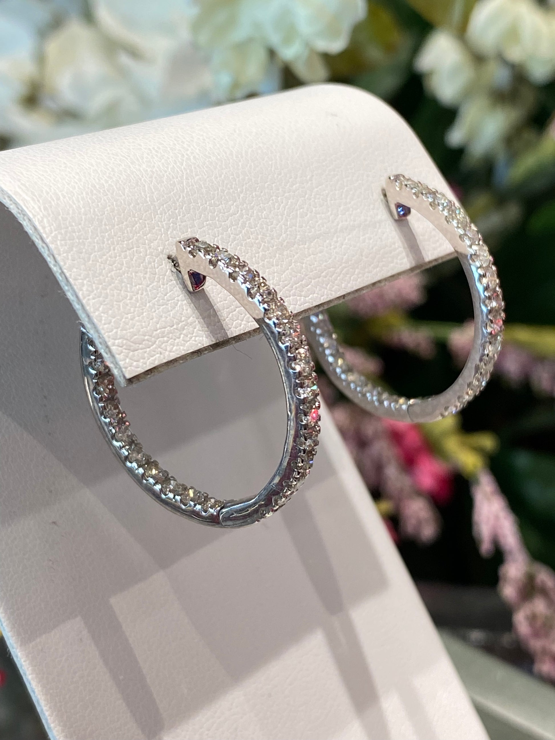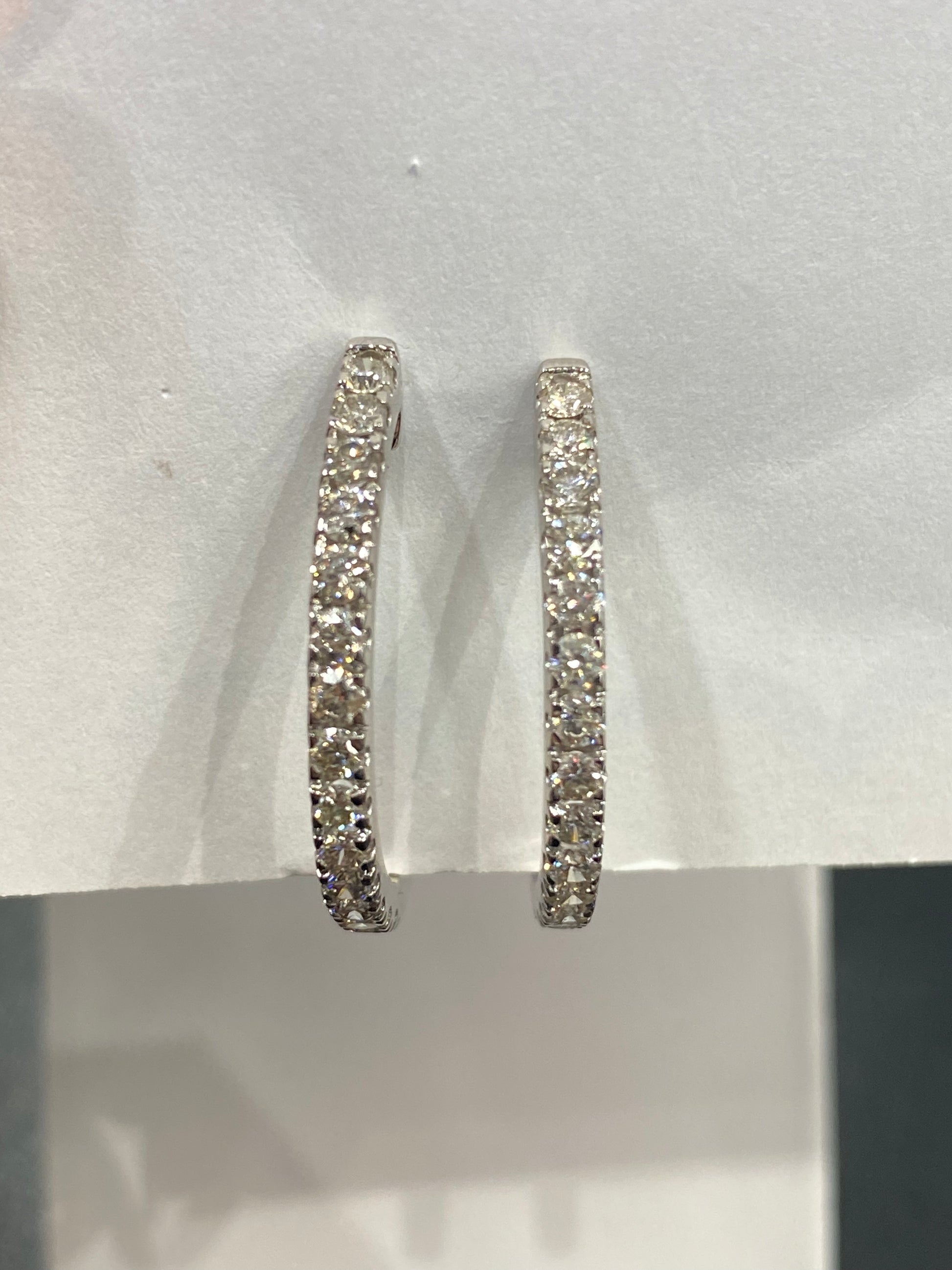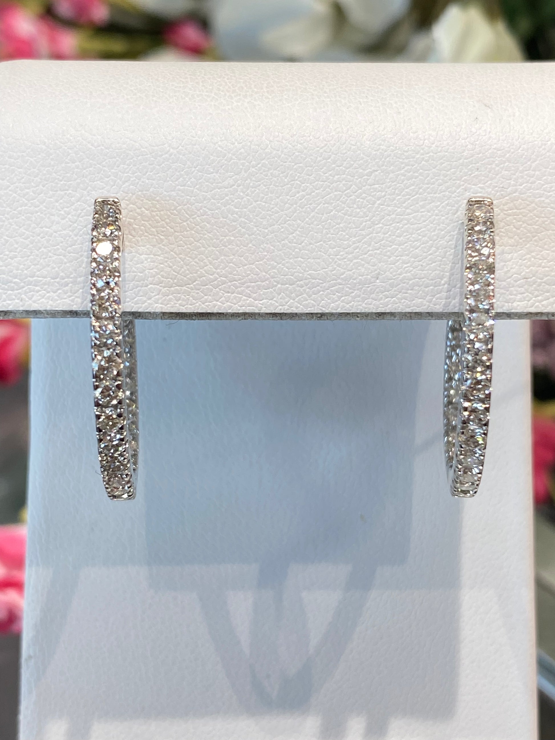5.9 Grams of 10k White Gold Hoop Earrings With 1.44CTW Of Round Diamonds