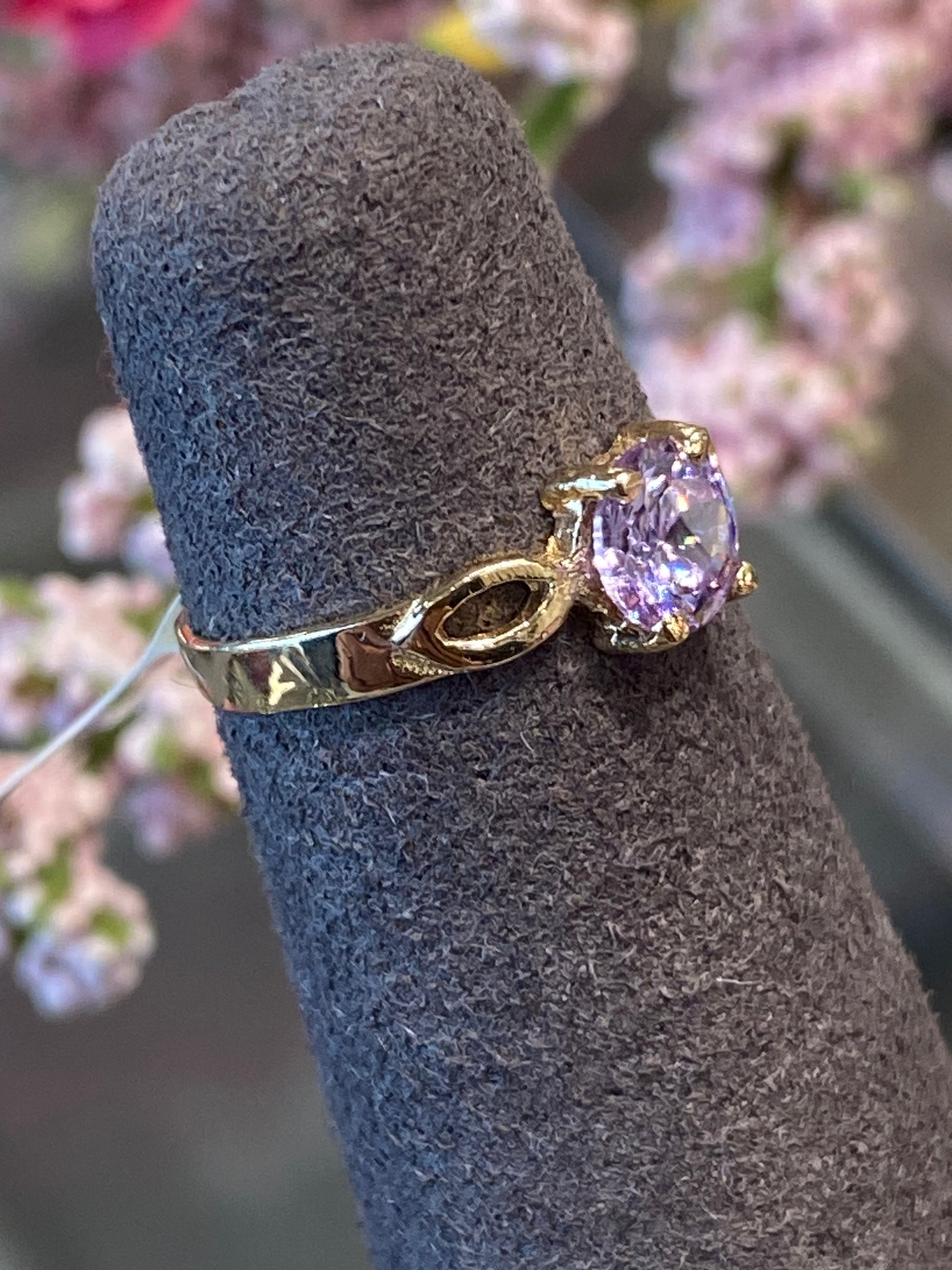 1 Grams Of 10k Yellow Gold Baby Ring With A Colored Stone. Ring Is A Size 2.5