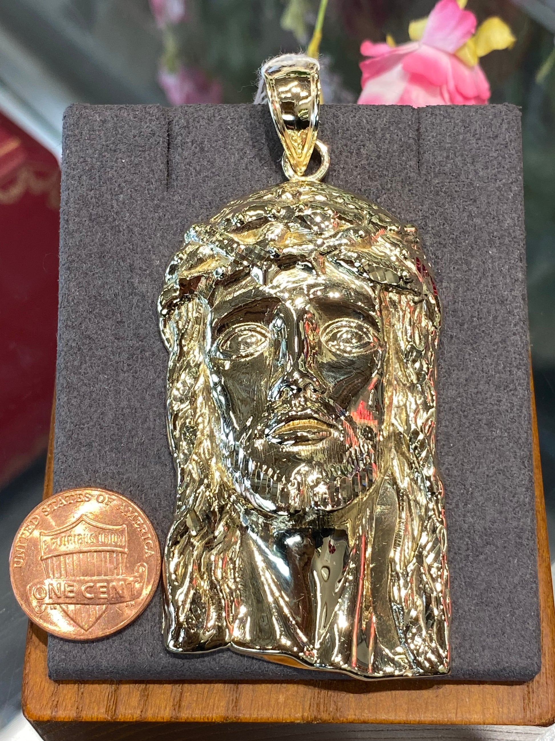 18.2 Grams Of 10k Yellow Gold Jesus Face Pendant. Pendant Is 3” Long