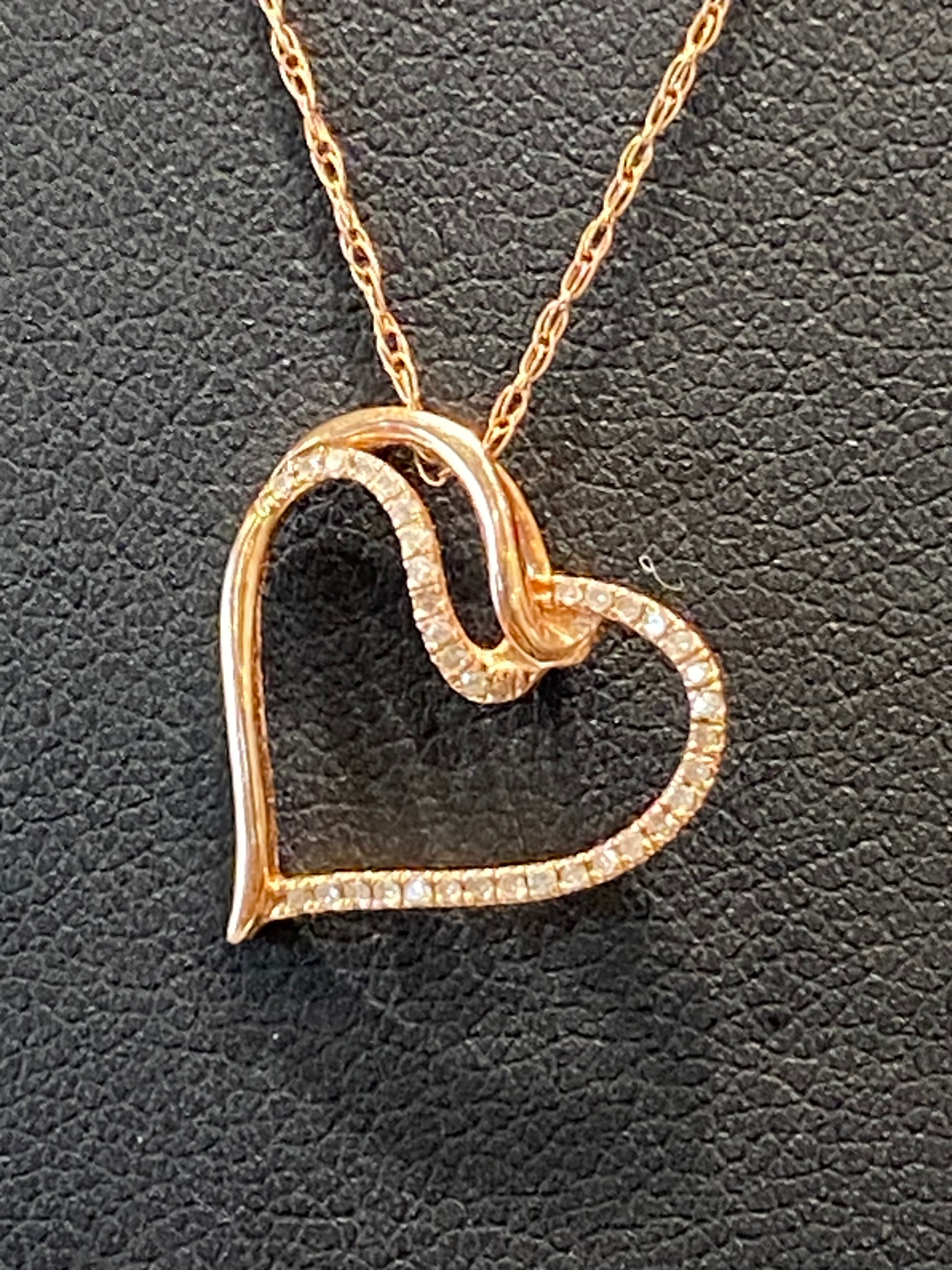1 Gram Of 14k Rose Gold Thin Chain With A Diamond Heart Charm. Chain Is 18” Long.