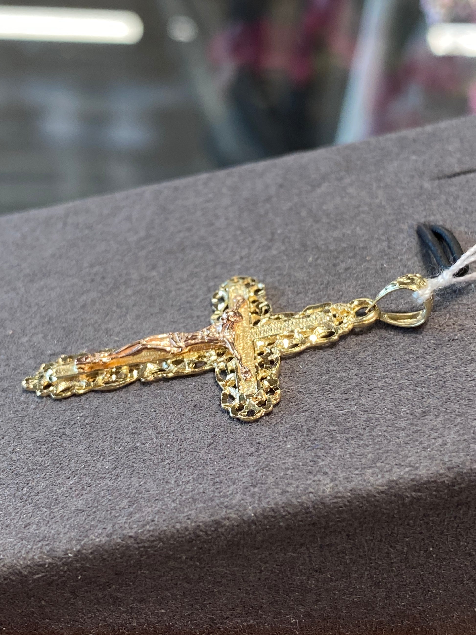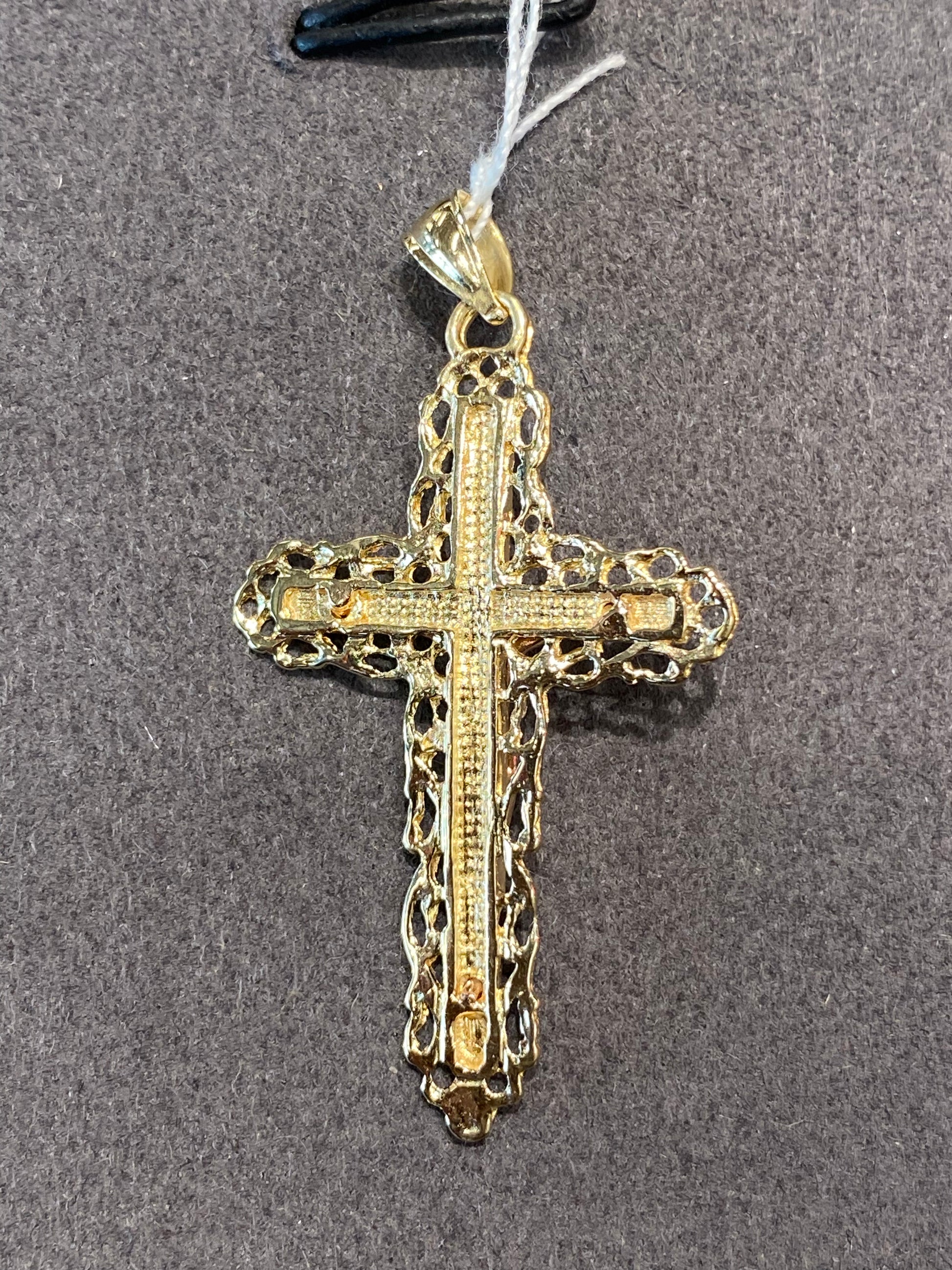 2.7 Grams Of 14k Two Tone Gold Cross Pendant. Pendant Is 1.75“ Long.