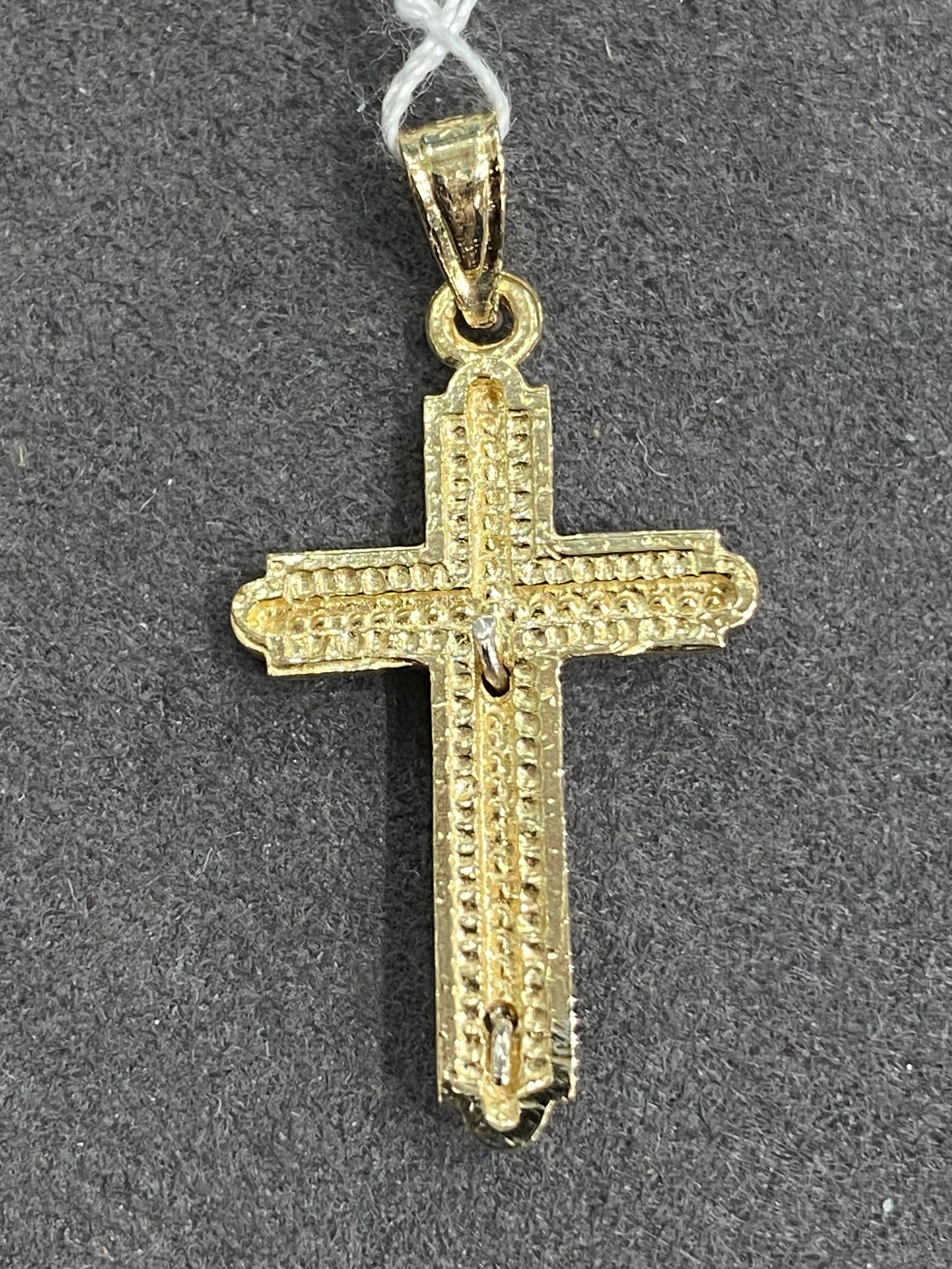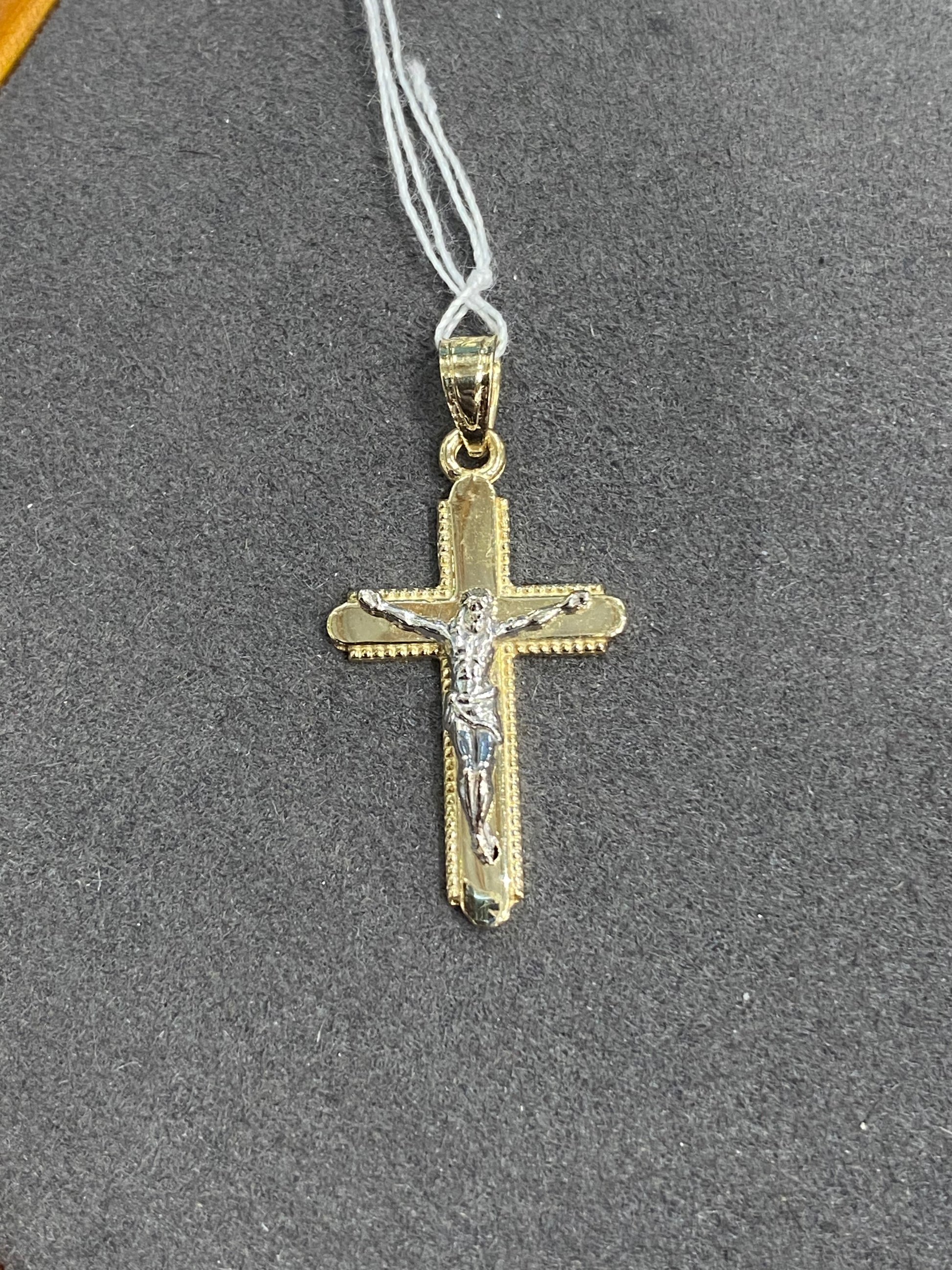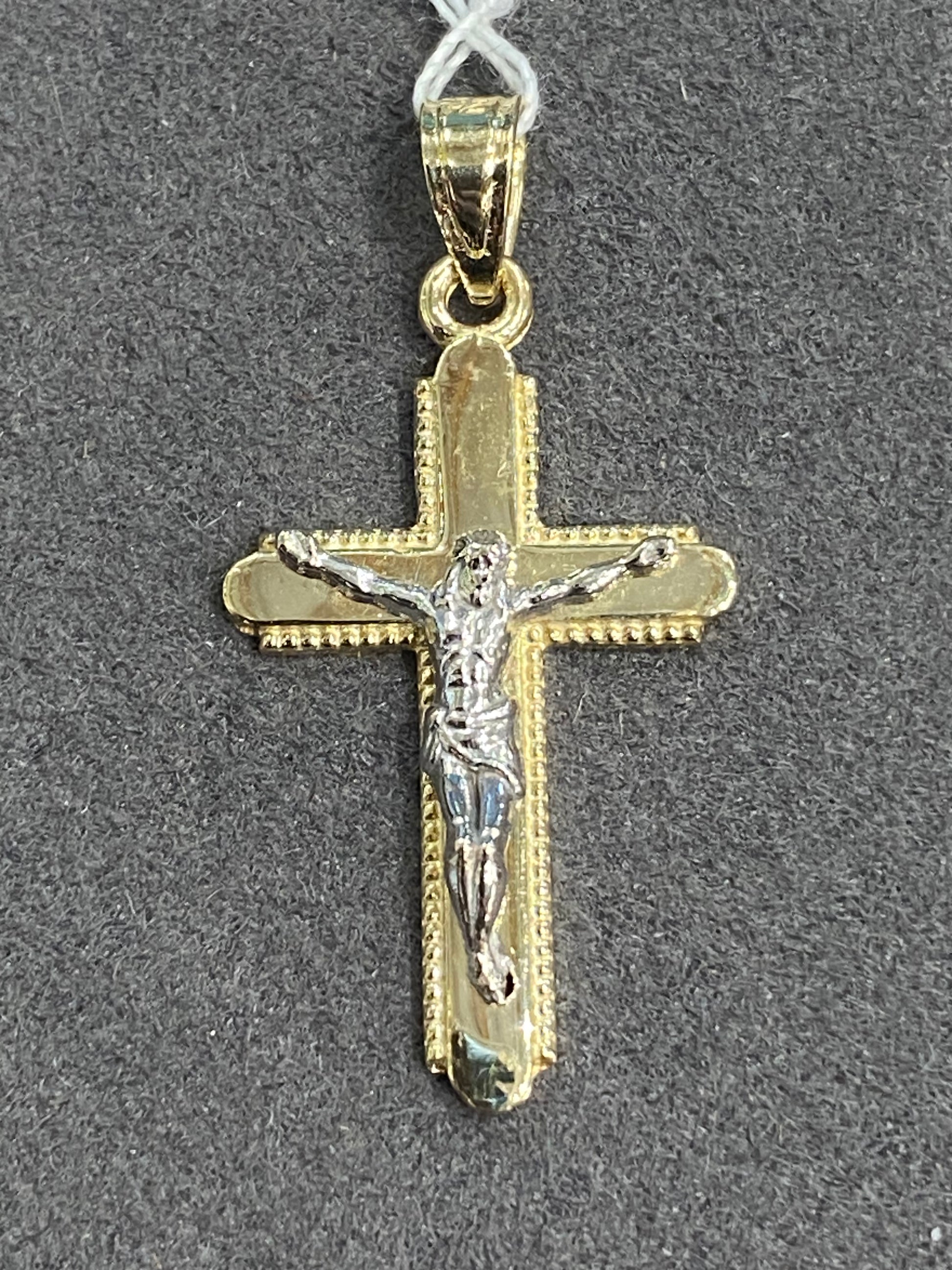 1.5 Grams Of 14k Two Tone Gold Cross Pendant. Pendant Is 1” Long.