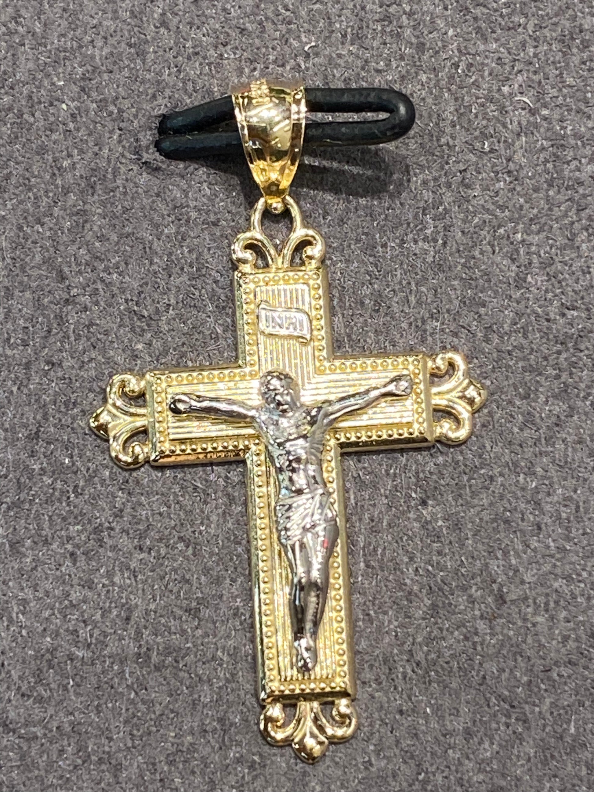 1.7Grams Of 14k Two Tone Gold Cross Pendant. Pendant Is 1“ Long