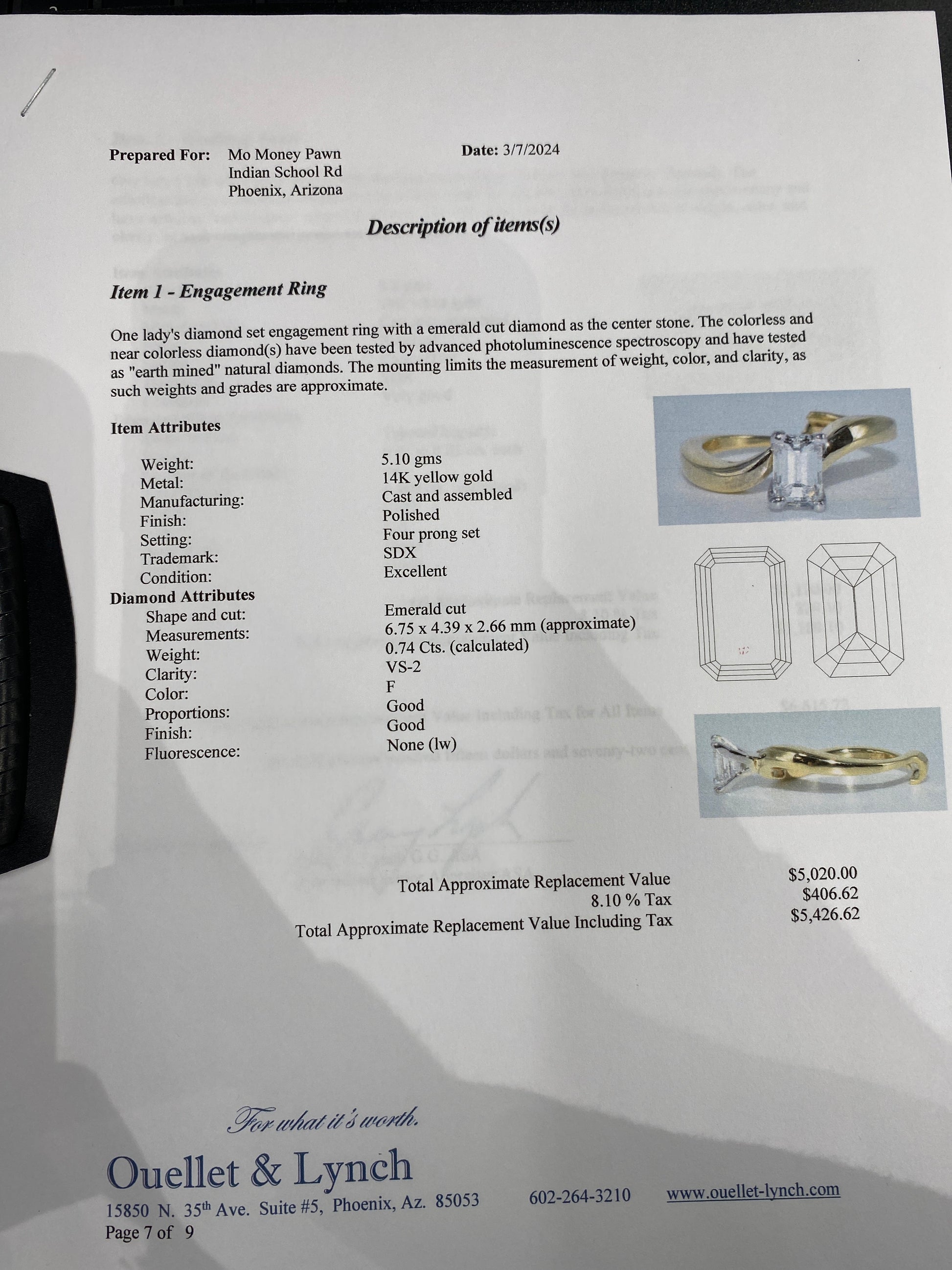 8.4 Grams Of 14k Two Tone Wedding Set. Wedding Set Has A 0.74CT Emerald Cut Diamond With A Clarity & Color of (VS-2-F)Set In A Yellow Gold Band. Wedding Set Also Has 0.24CTW of Tapered Baguettes With A Clarity Of (SI/I1) & Color Of (H/I)Set In A White Gold Band. Wedding Set Is A Size 6.5 & Comes With An Appraisal.