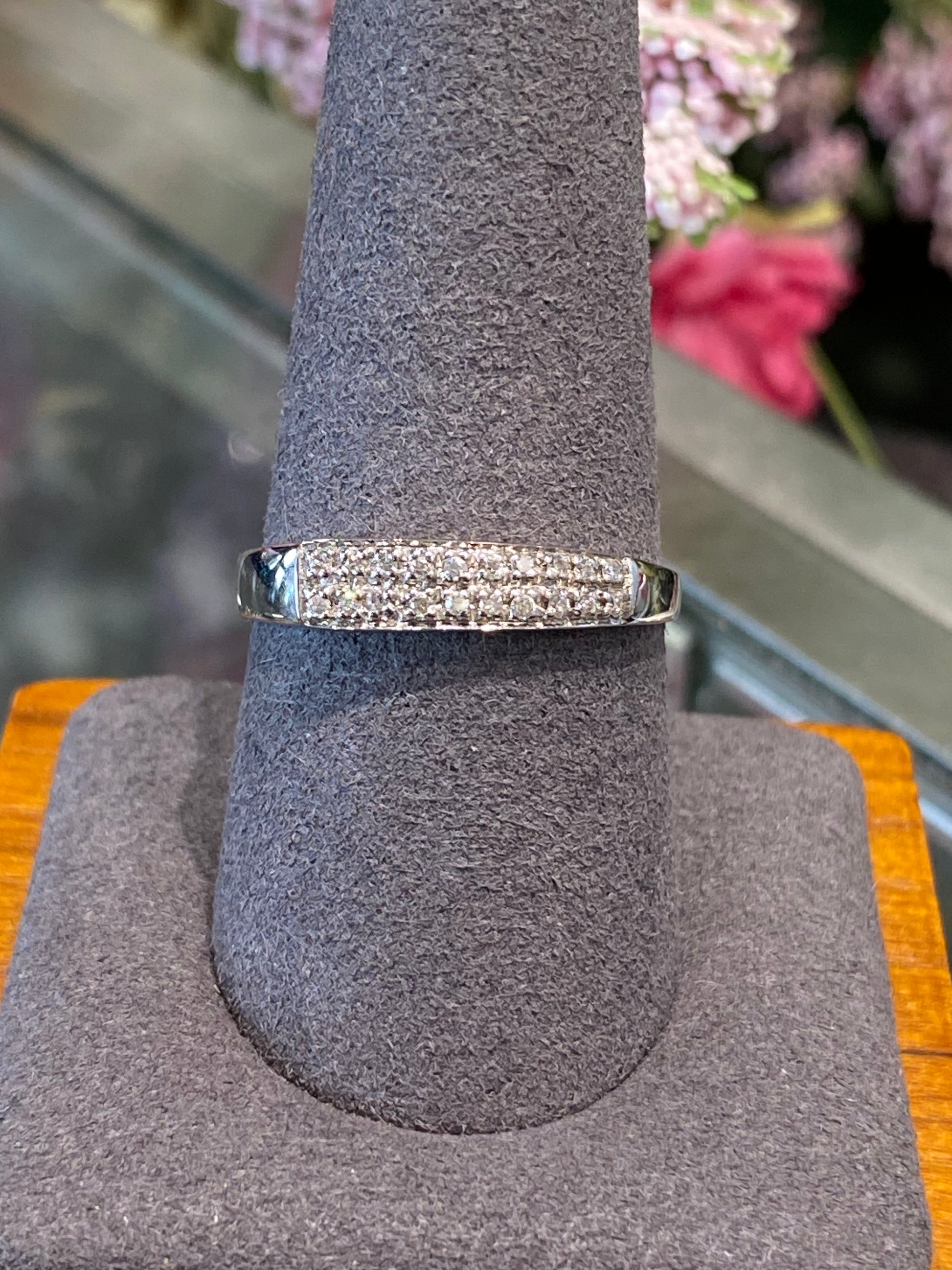 2 Grams Of 14k White Gold Band With 0.20CTW Of Diamonds. Ring Is A Size 9.5
