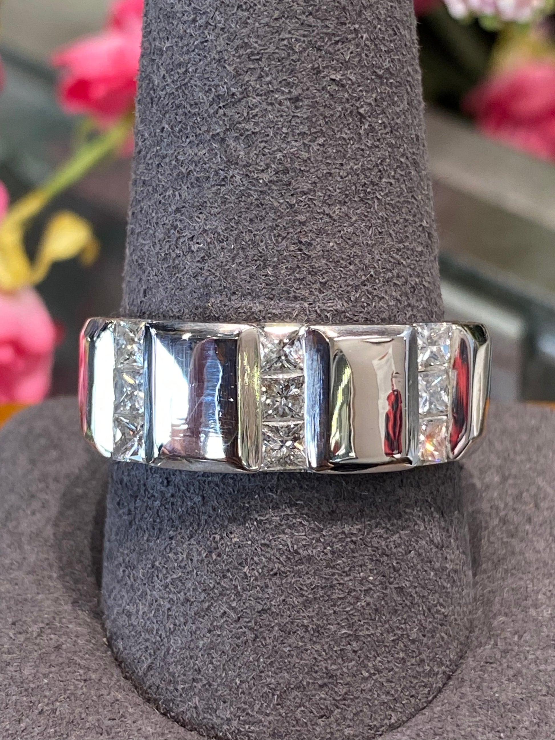 11.4 Grams Of 14k White Gold Band With 0.90CTW Of Princess Cut Diamonds. Ring Is A Size 10.5