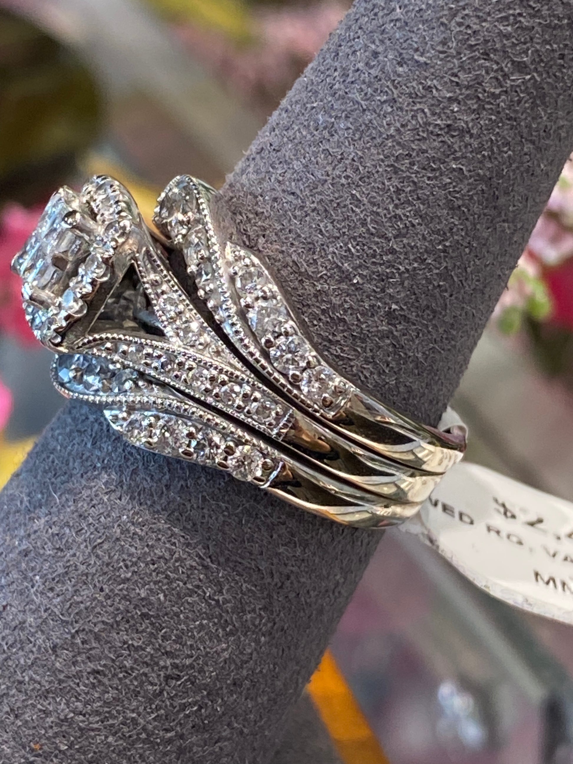 8.8 Grams Of 14k White Gold Wedding Set With 1.08CTW Of Princess Cut & Round Diamonds. Ring Is A Size 6.5 Wedding Set Is Soldered Together