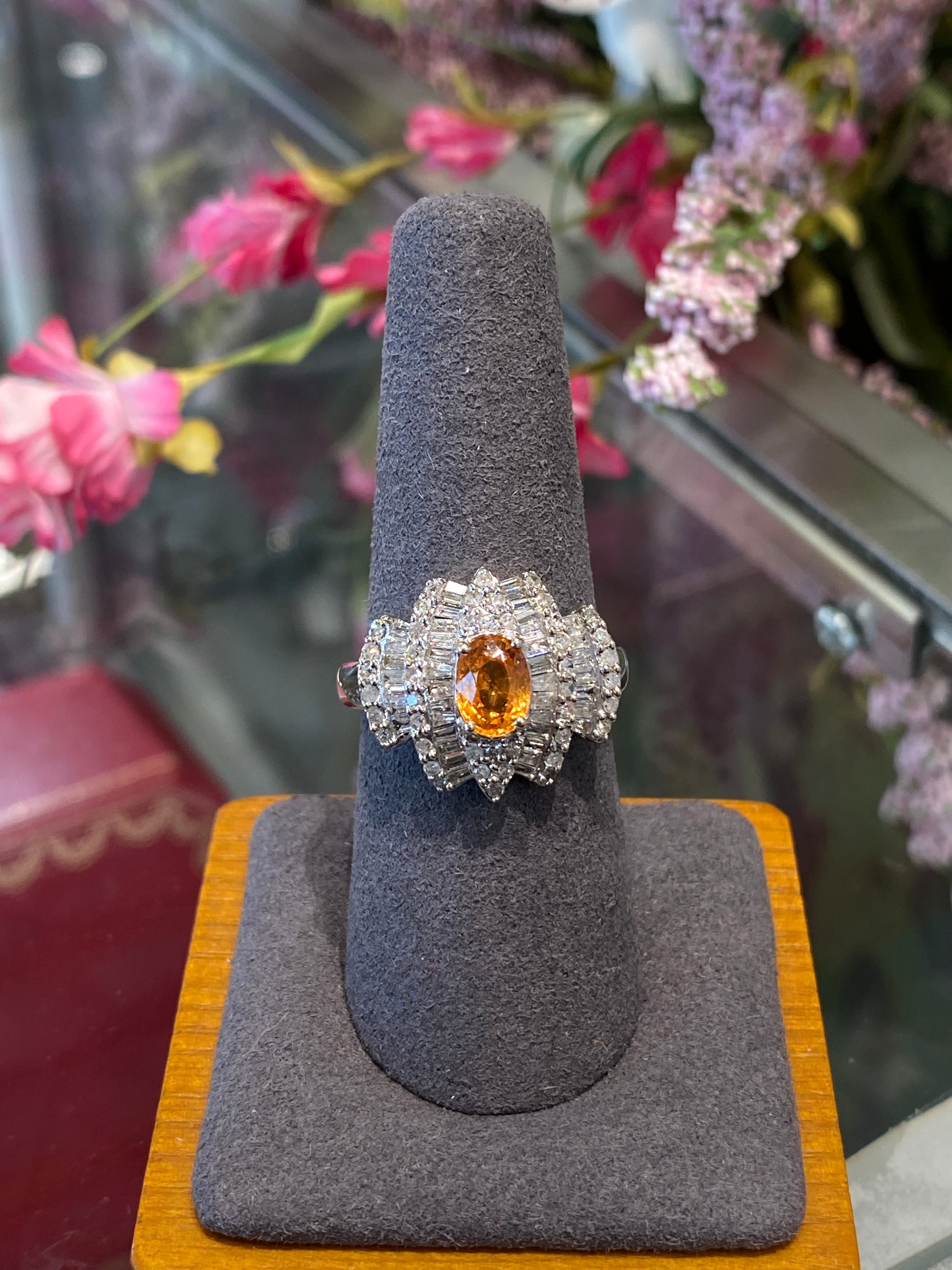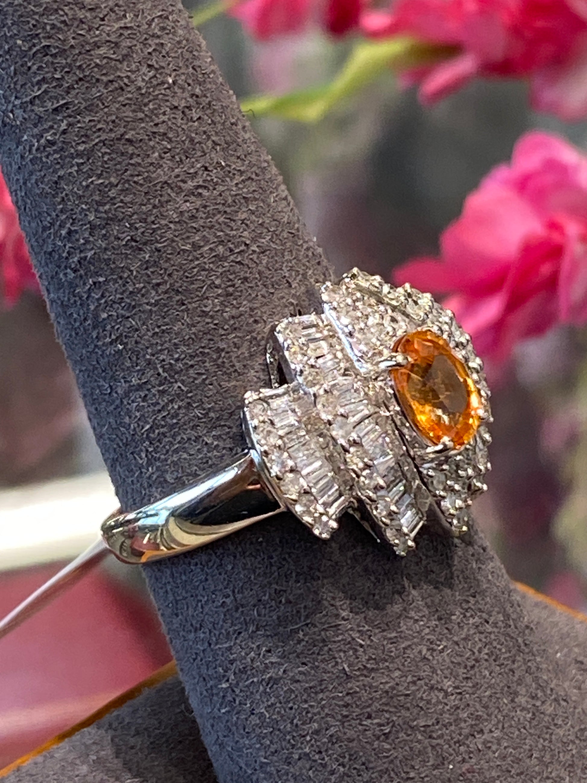 14k White Gold Orange Garnet & Diamond Ring