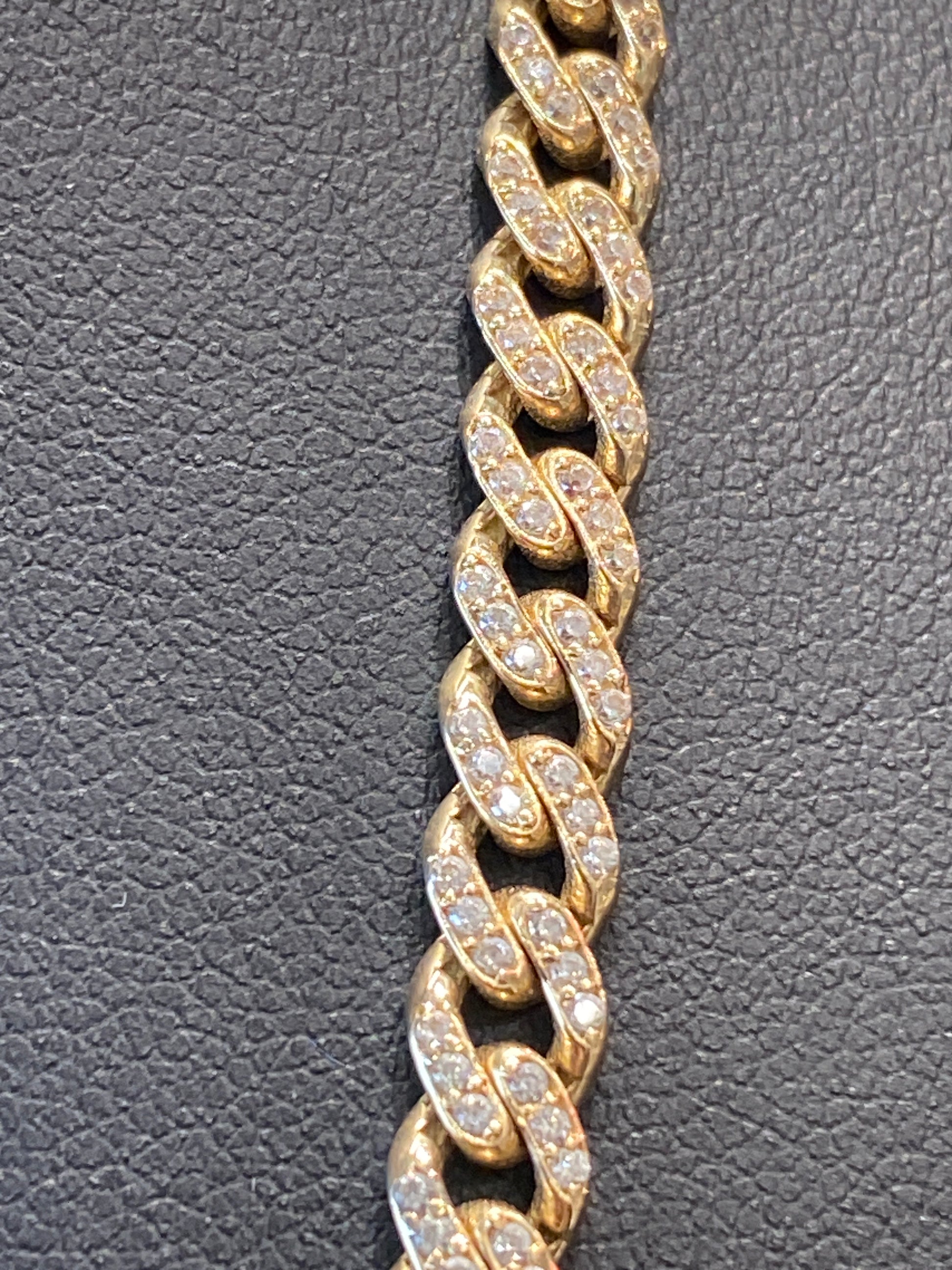 22.5 Grams Of 14k Yellow Gold Cuban Chain With Cubic Zirconias. Chain Is 22” Long & 5MM.