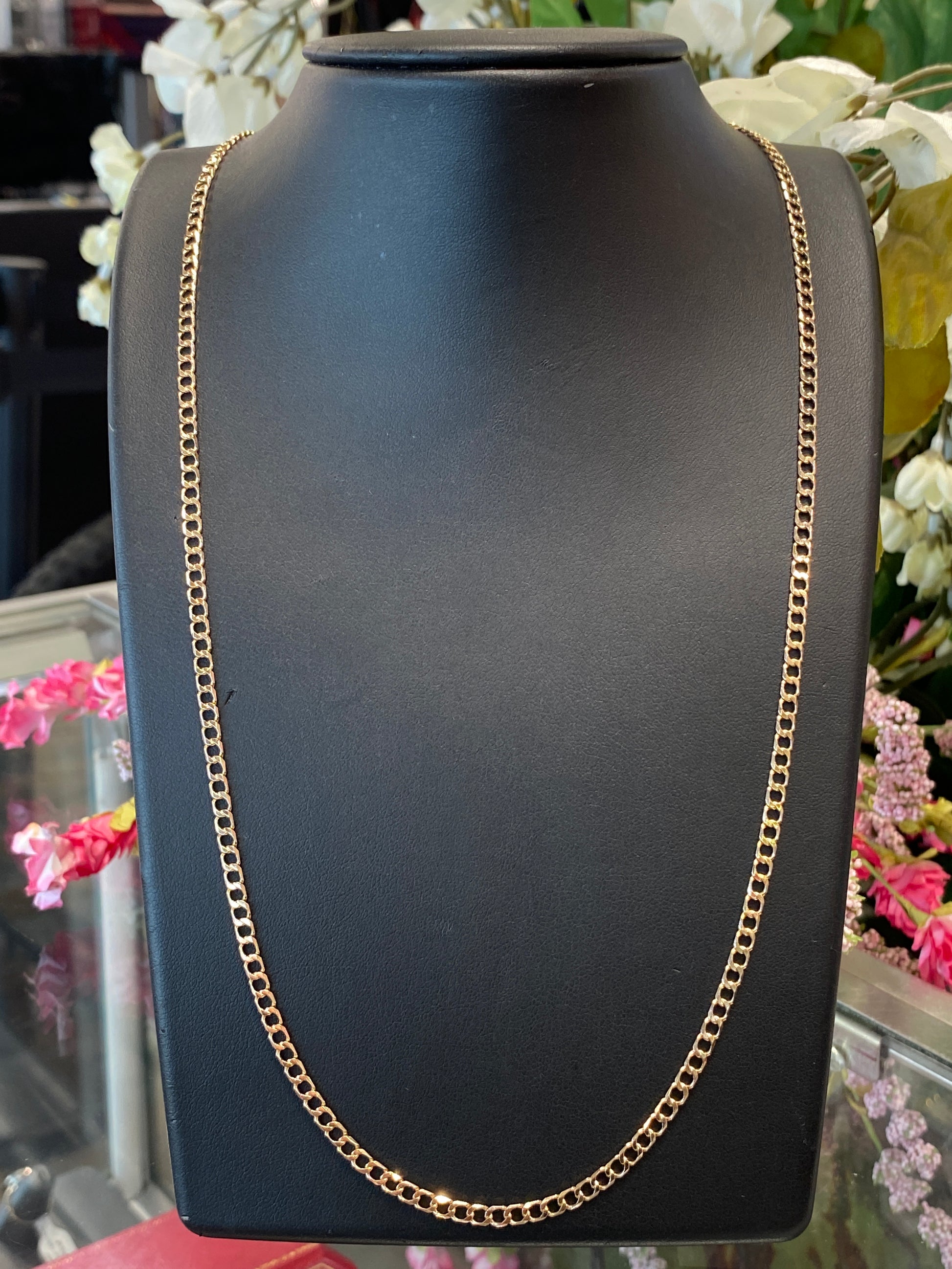 8.5 Grams Of 14k Yellow Gold Curb Link Chain. Chain Is 23” Long & 3.2MM