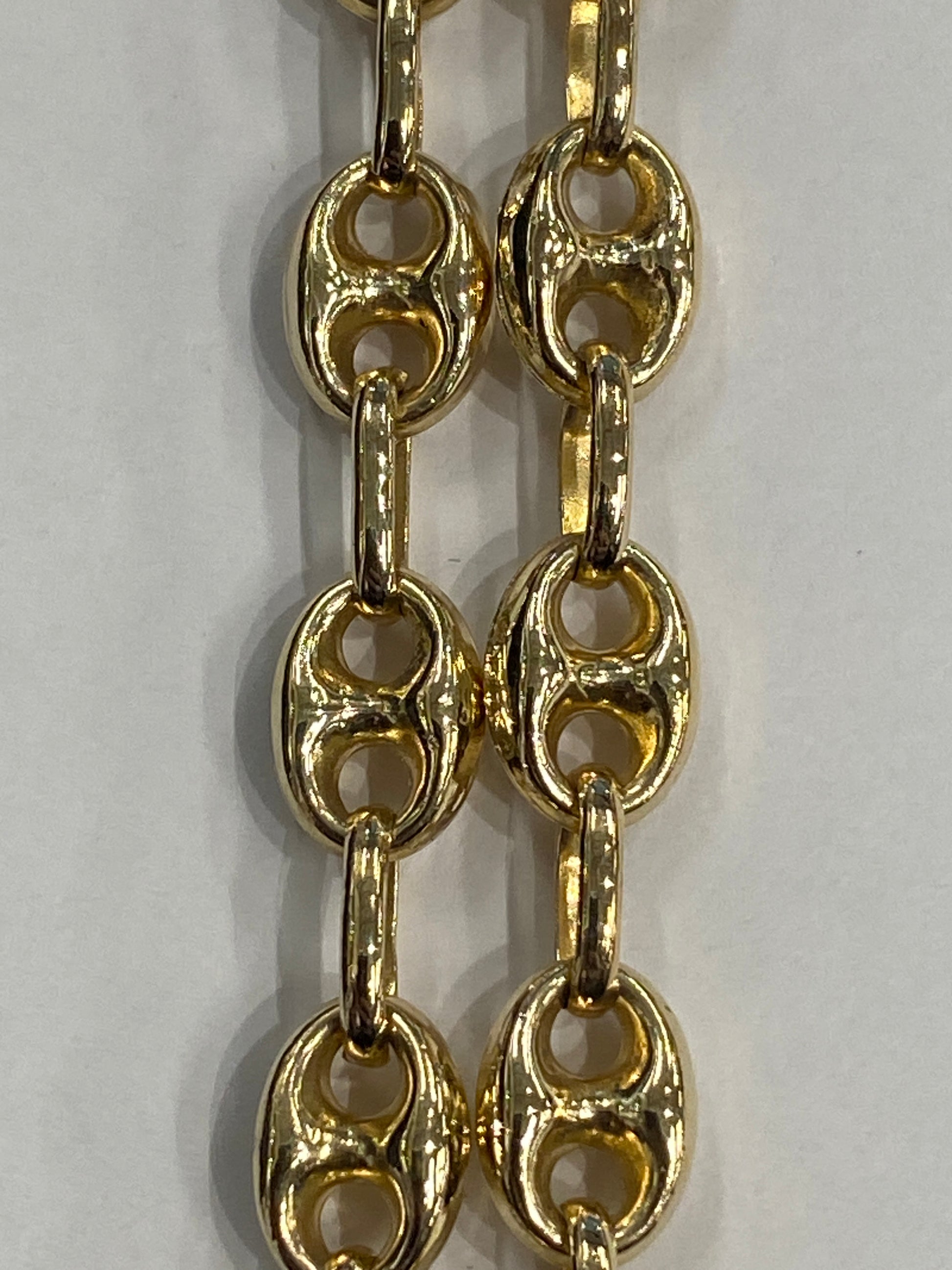 16.5 Grams Of 10k Yellow Gold Gucci Puff Style Chain. Chain Is 23” Long & 6MM Wide.