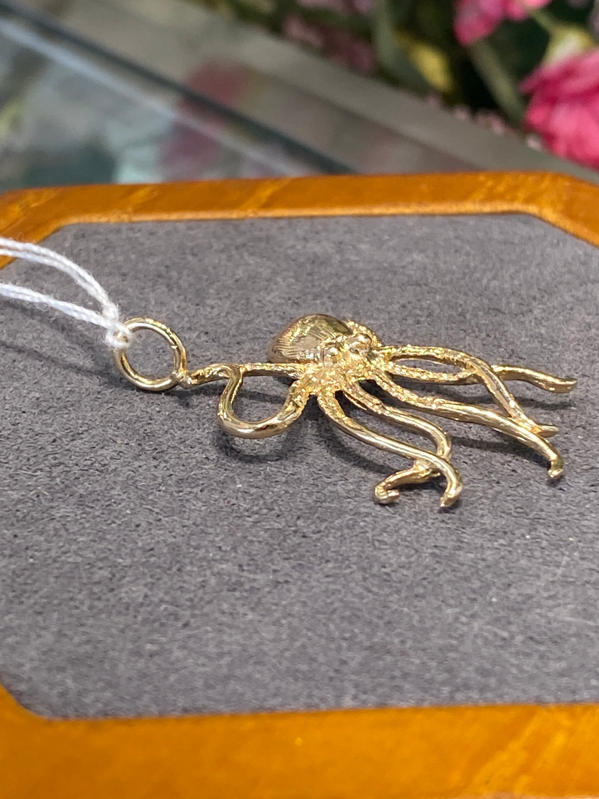 2.8 Grams Of 14k Yellow Gold Octopus Pendant. Pendant Is 1.5” Long.