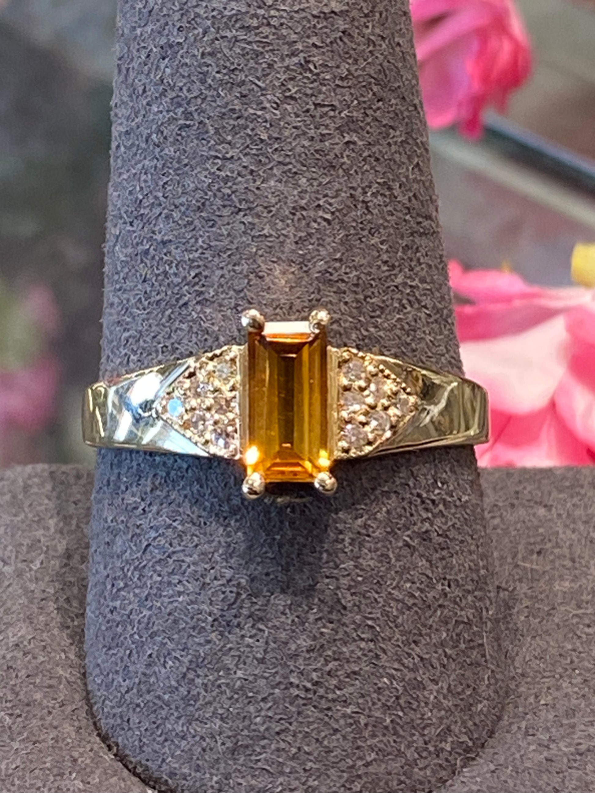 4.3 Grams Of 14k Yellow Gold Ring With A Colored Stone With Diamonds. Ring Is A Size 10