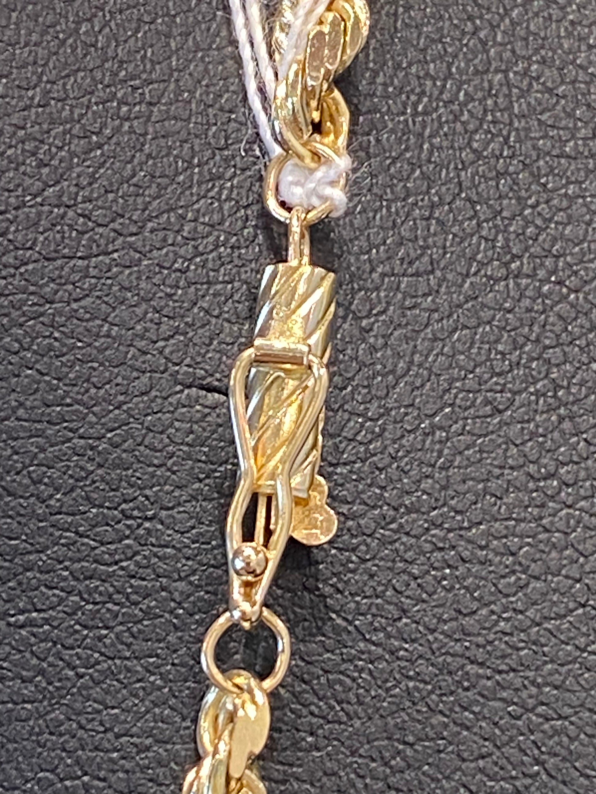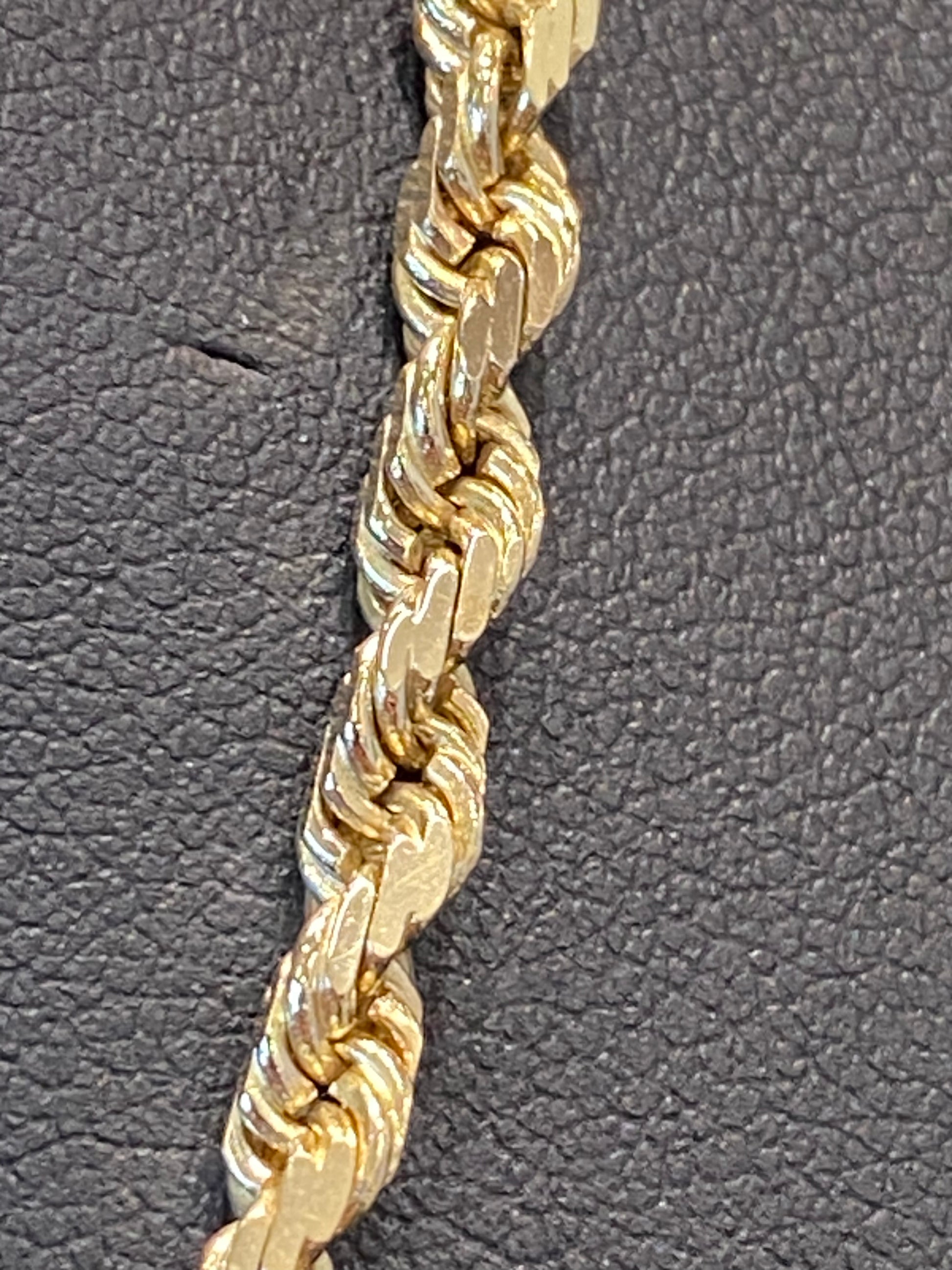 18.4 Grams Of 14k Yellow Gold Rope Chain. Chain Is 16” Long & 3MM