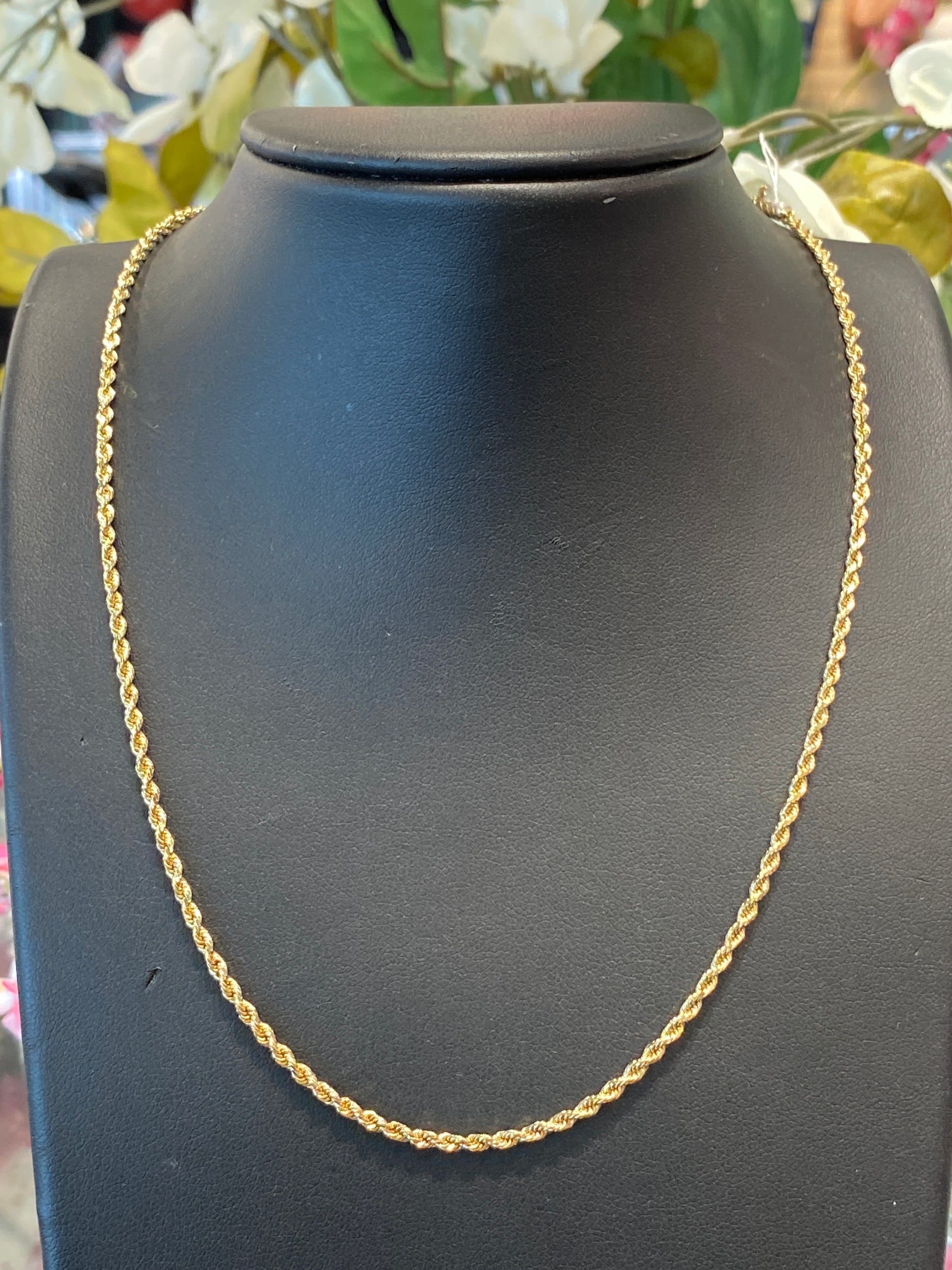 8.3 Grams Of 14k Yellow Gold Rope Chain. Chain Is 18” Long & 2.4MM