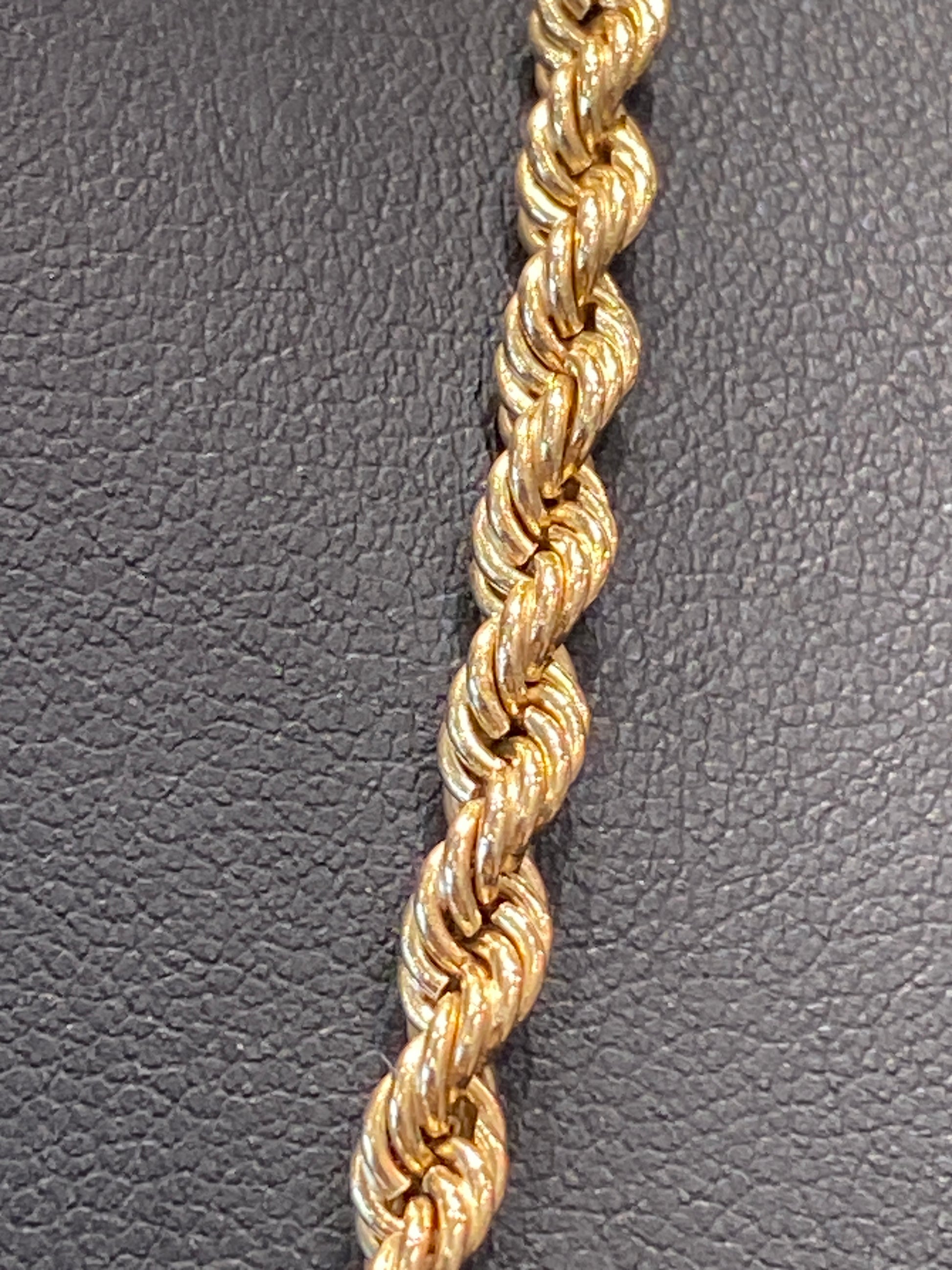 13.9 Grams Of 14k Yellow Gold Rope Chain. Chain Is 18” Long & 4MM