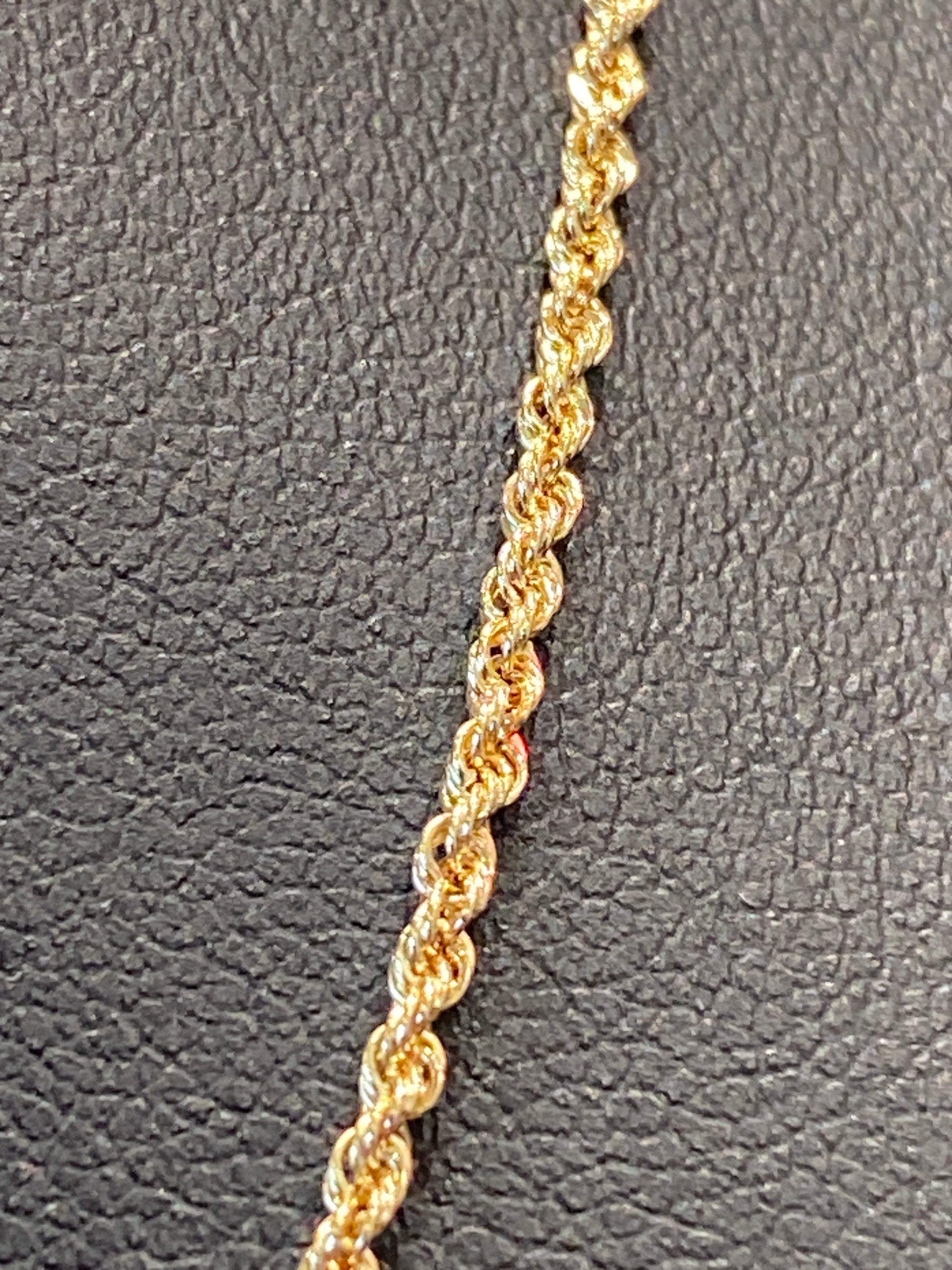 3.2 Grams Of 14k Yellow Gold Rope Chain. Chain Is 16” Long & 1.6MM
