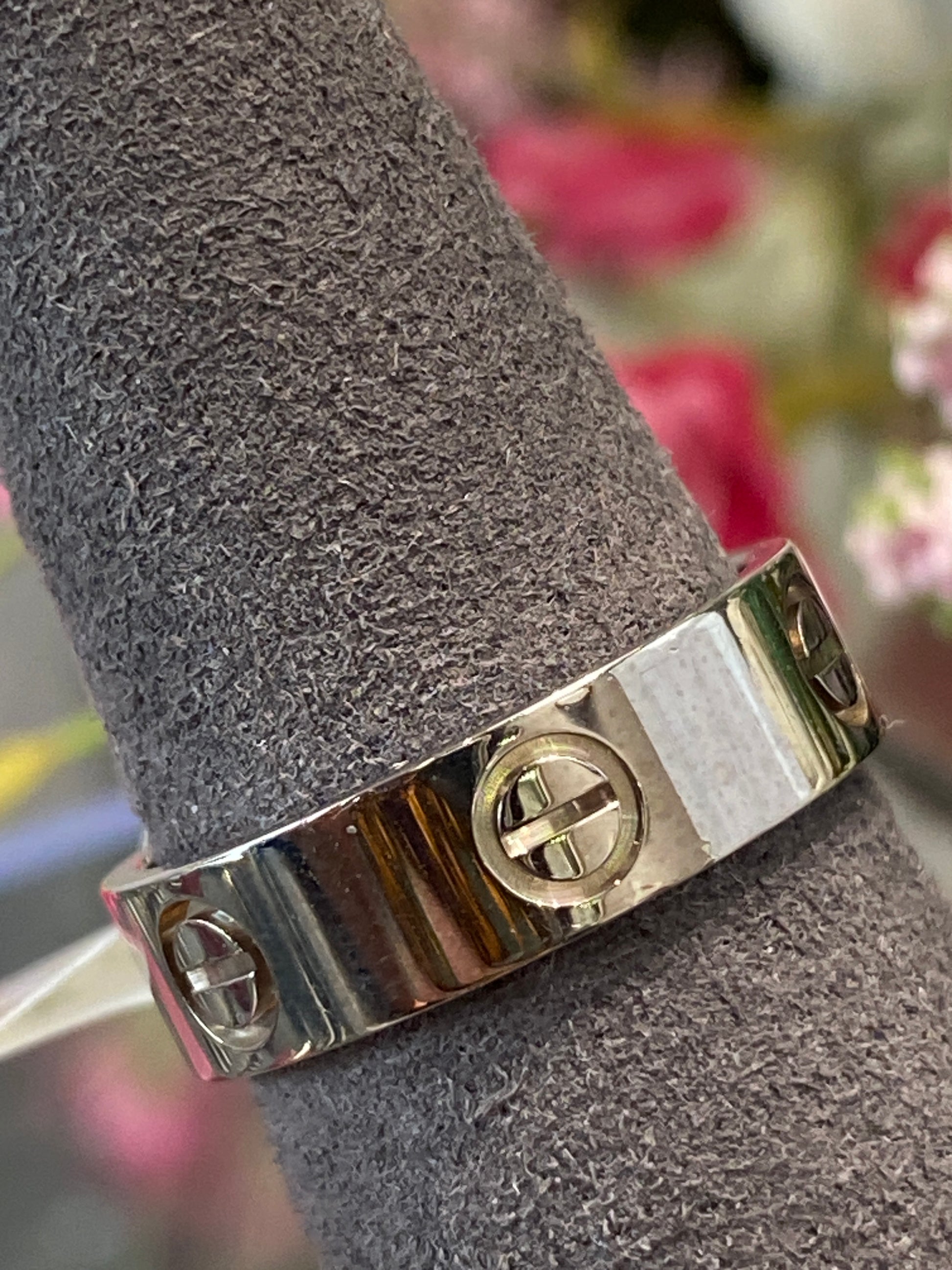 6.5 Grams of 18k White Gold Cartier Love Ring. Cartier Ring Is Engraved In The Inside With Cartier 54 GAC257 Au750. Cartier Ring Is A Size 7.