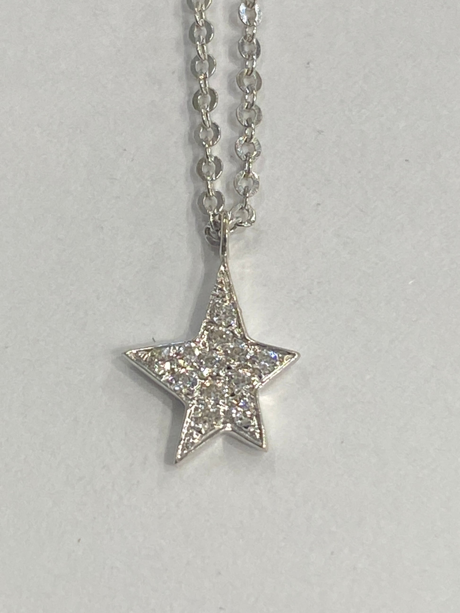 2.1 Grams Of 18k White Gold Chain With 0.12CTW Of Diamond Star Pendant. Chain Is 18” Long & 0.8MM