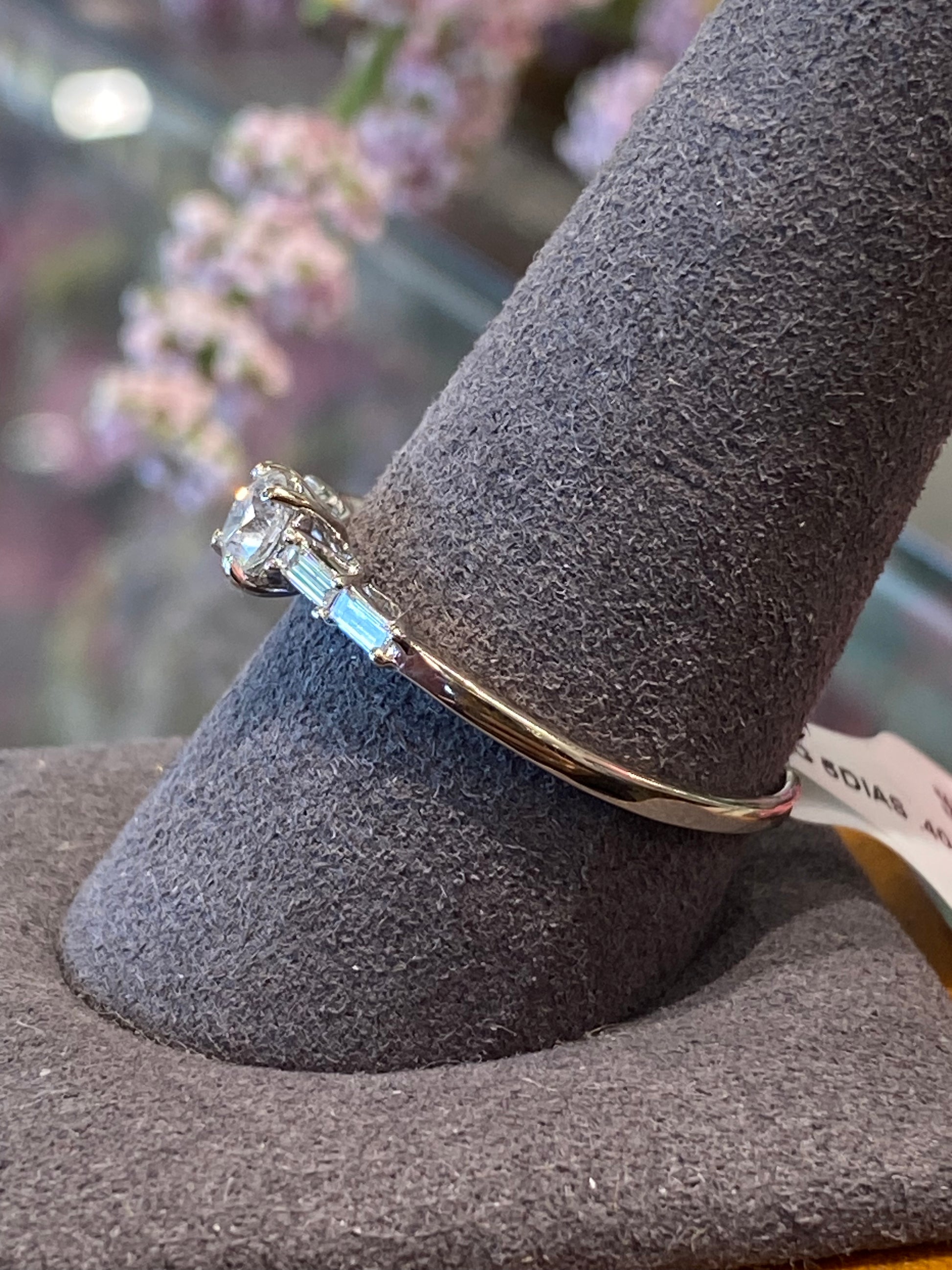 2.2 Grams Of 18k White Gold Engagement Ring With A 0.28CT Round Diamond In The Center & 0.12CTW Of Baguette Diamonds. Ring Is A Size 10.