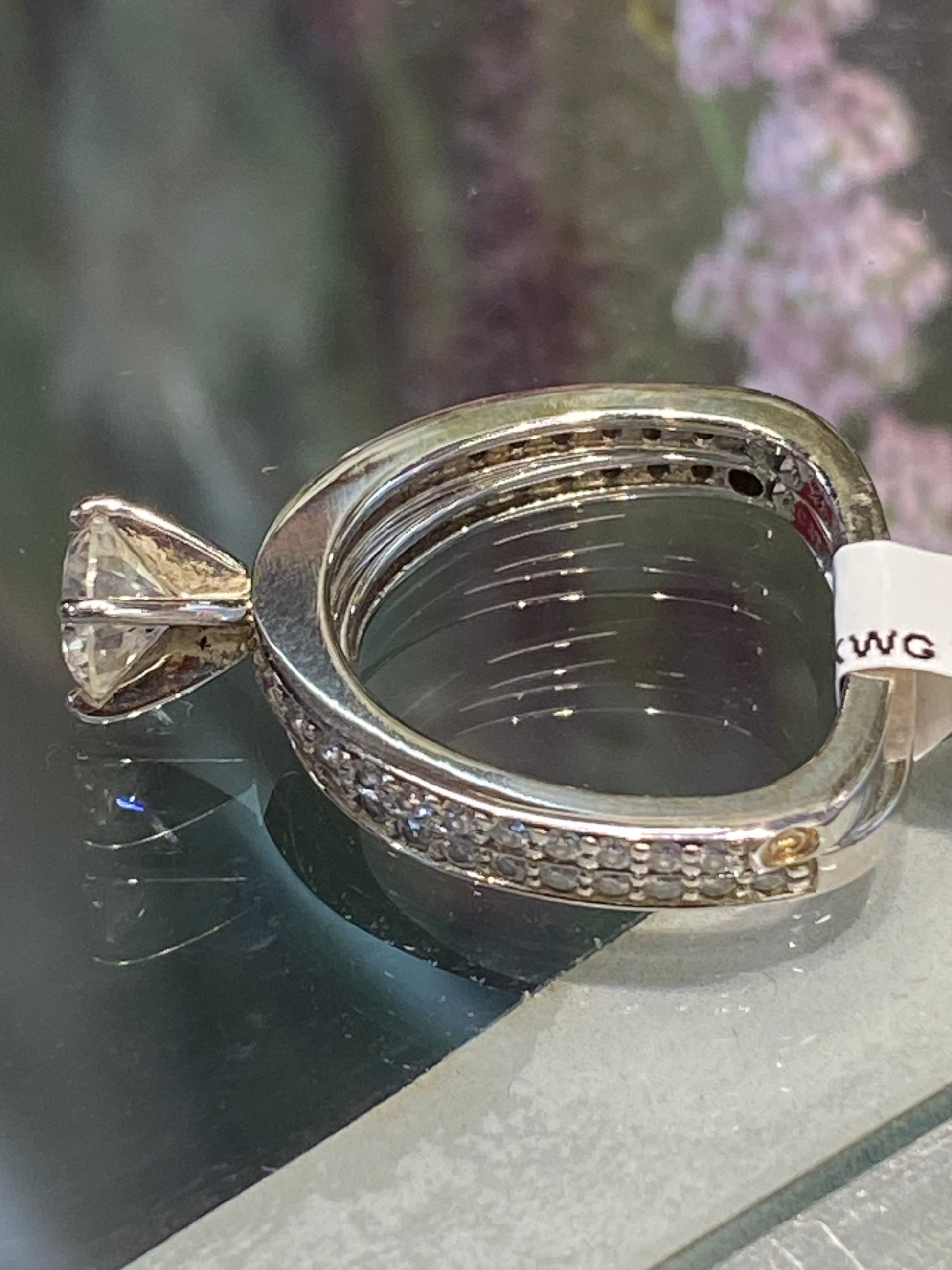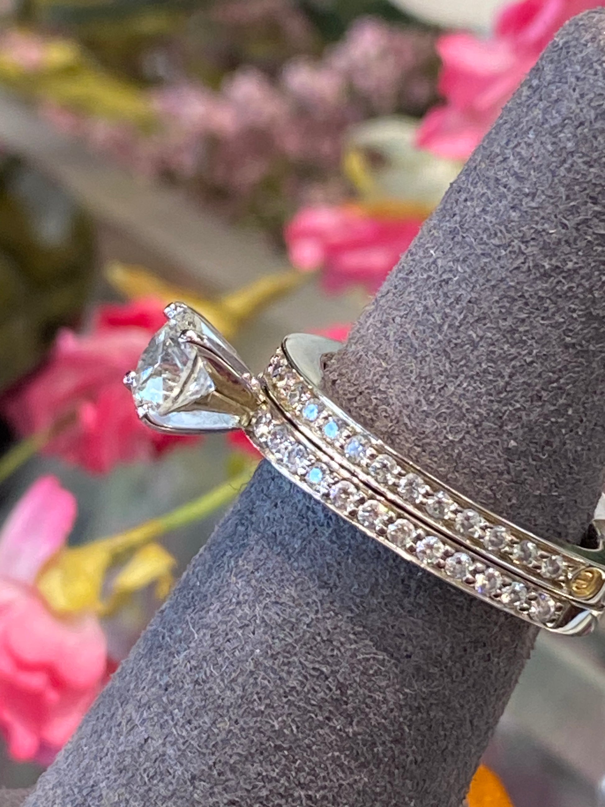7.1 Grams Of 18k White Gold Wedding Set With A 0.75CT Round Diamond In The Center & 0.49CTW Of Round Diamonds. Ring Is A Size 7