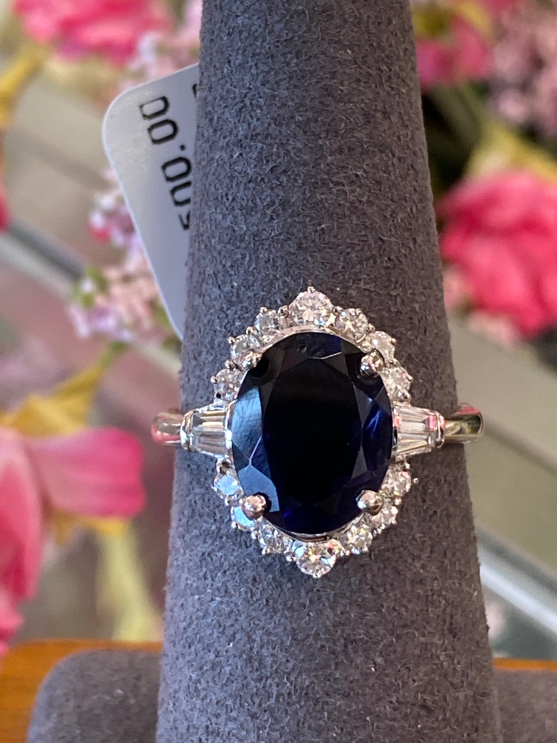 4.7 Grams Of 18k White Gold Ring With An Oval Shaped Iolite That Measures 11.0MM x 8.8MM x 4.85MM. Ring Also Has 14 Round Cut Diamonds That Weighing 0.42CTW With A Clarity Of (VS/2 & SI/1) & Color Of (H / I). Ring Also Has 4 Baguette Cut Diamonds Weighing 0.15CTW With A Clarity Of (VS2) & Color Of (H / I). Ring Is A Size 6.5 & Comes With An Appraisal.