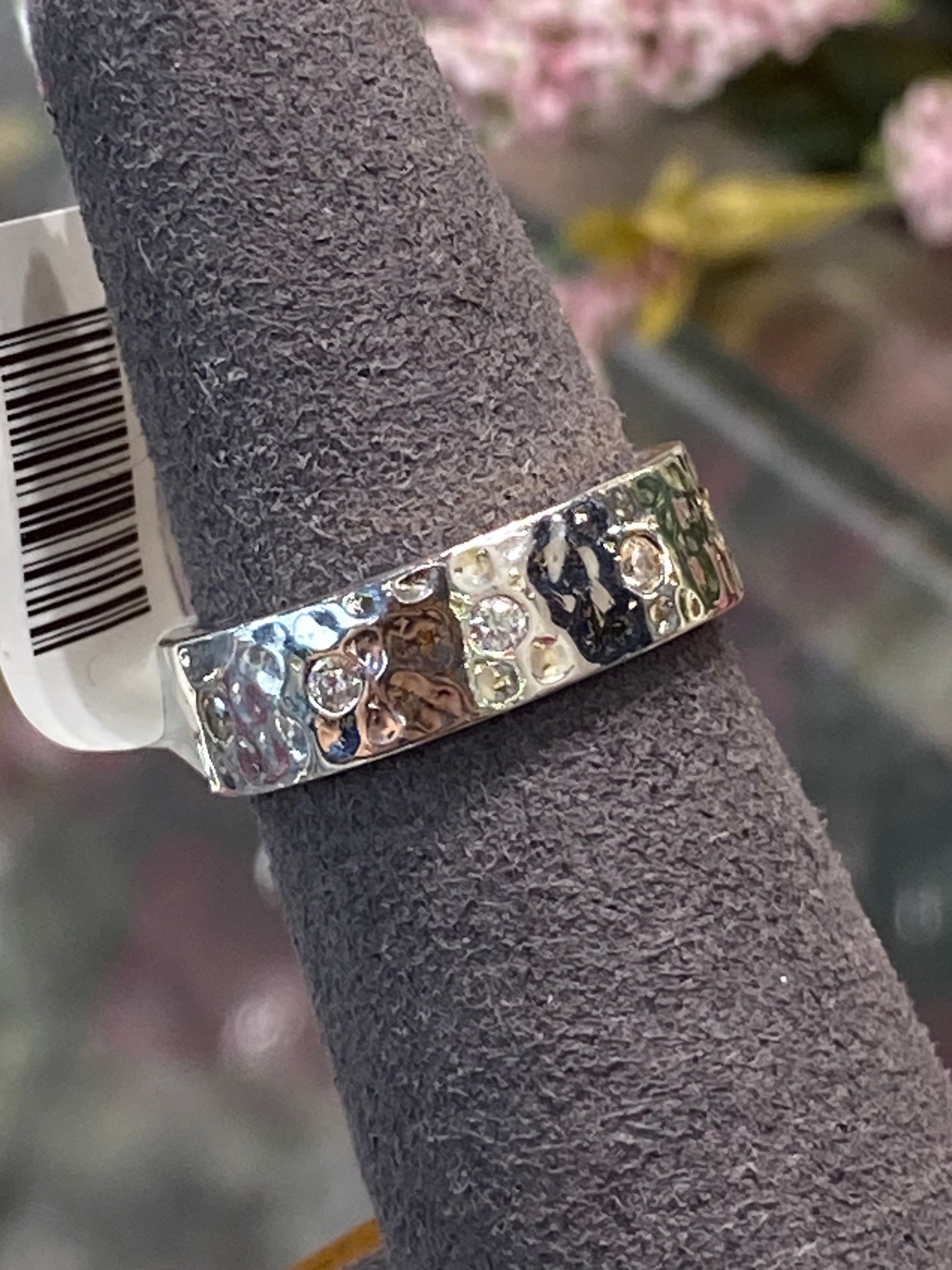 4.7 Grams Of 925 Silver Band With Cubic Zirconias. Band Is A Size 5.75