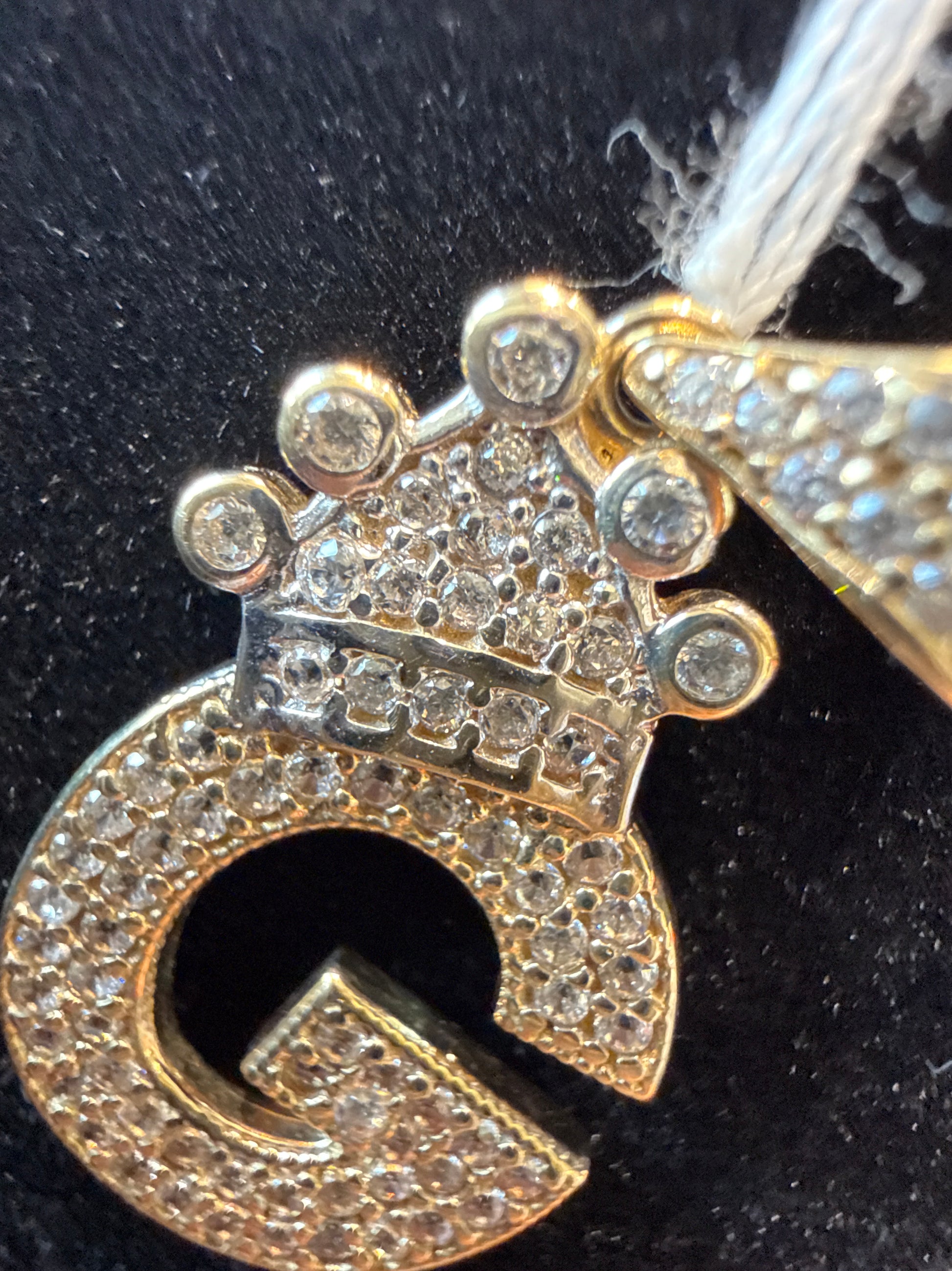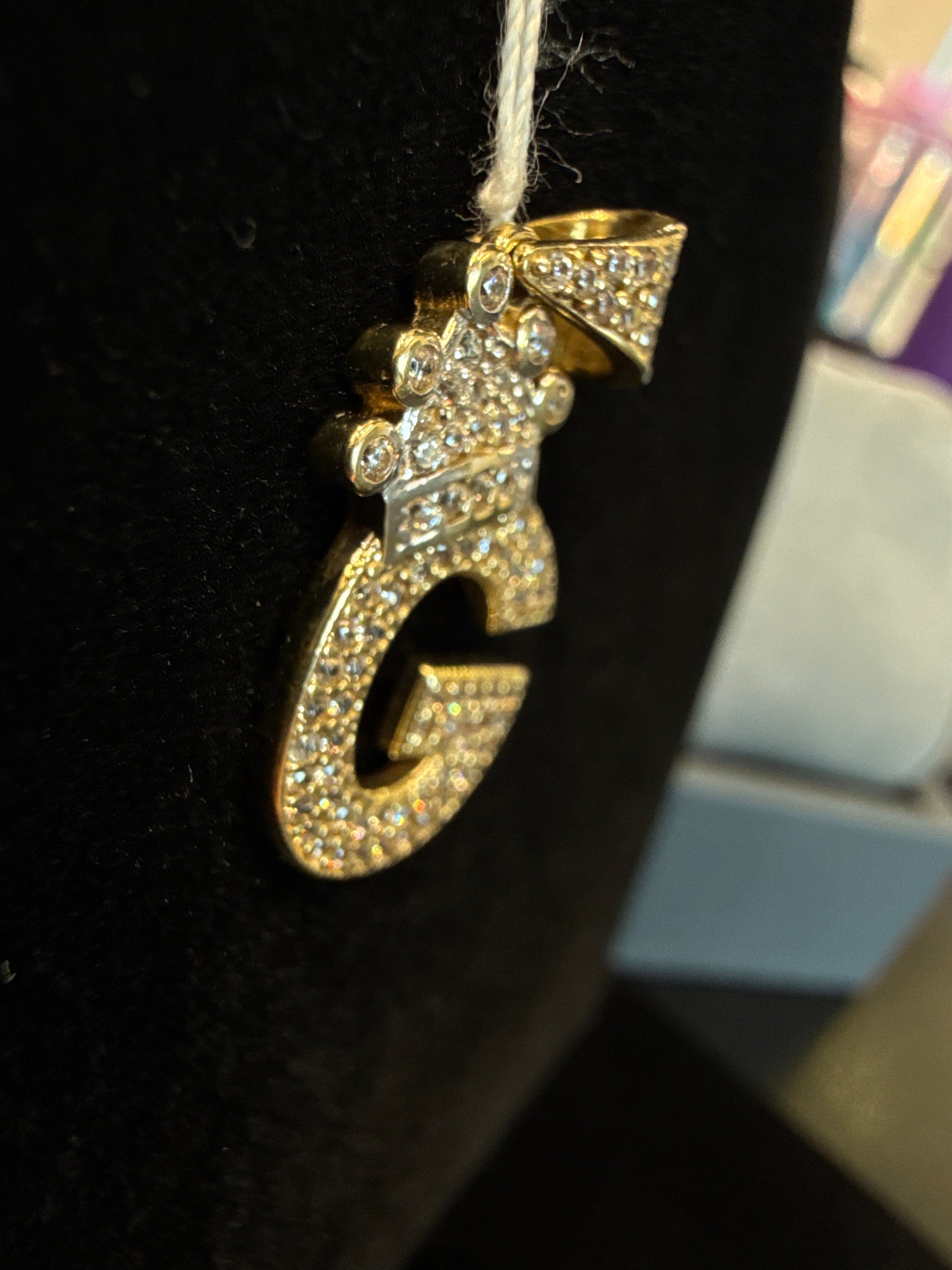 10K YG 2.4G letter “G” W/crown charm with CZ