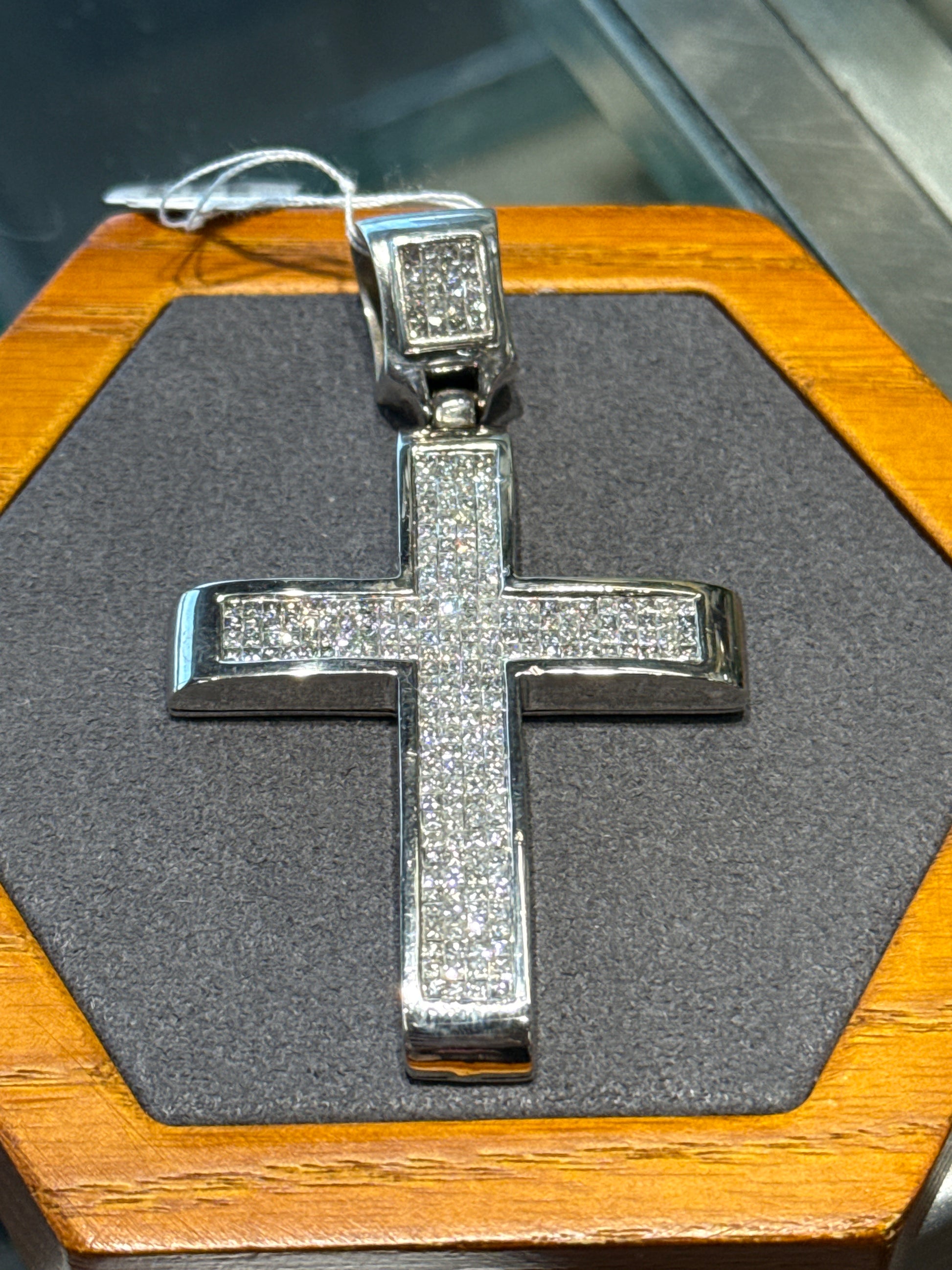 14k white gold 25.4g Cross Charm w/ 232 princess cut diamonds 3.48ctw
