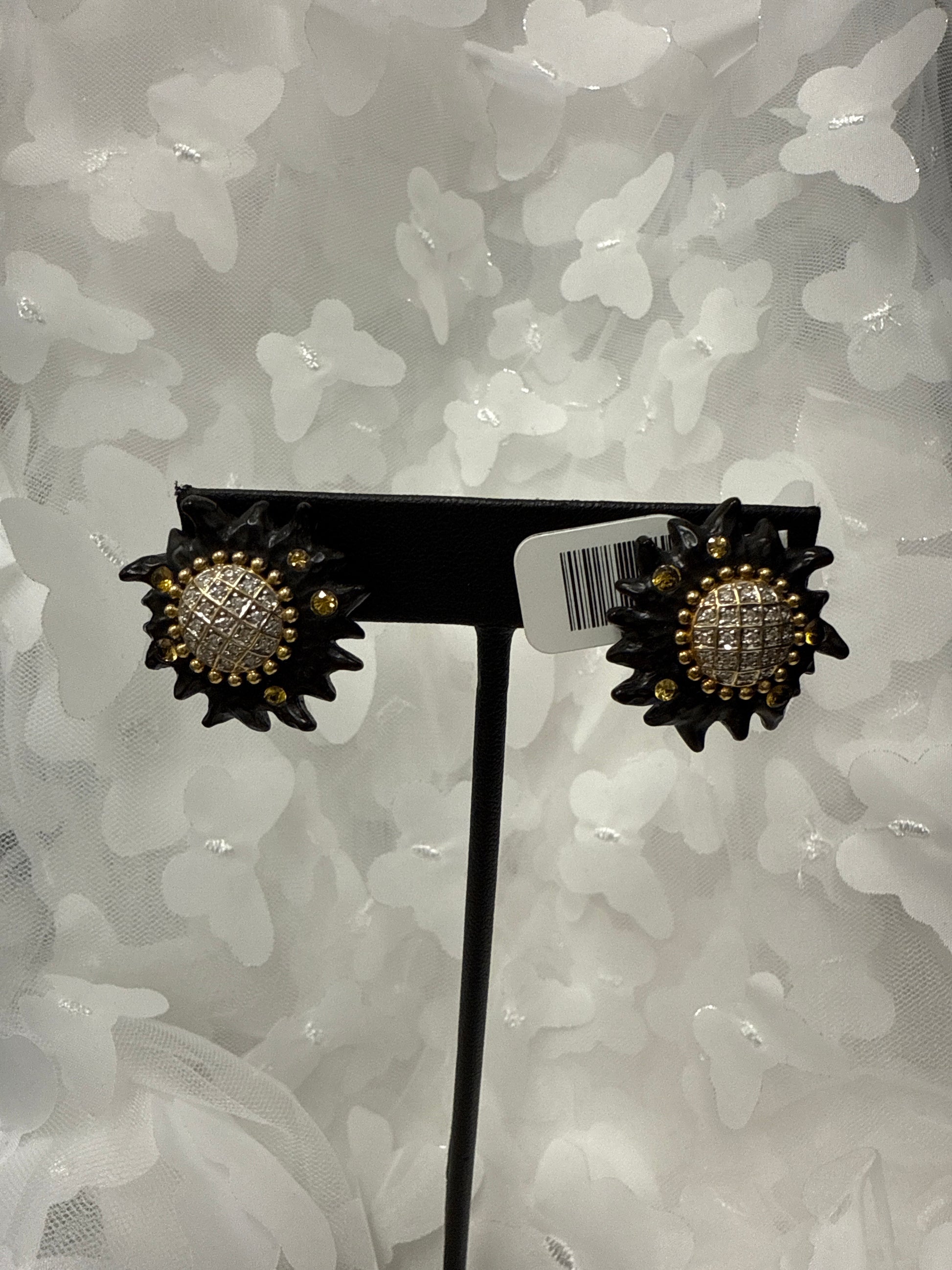 18K Yellow Gold 11.3G Black Flower With Yellow Stones