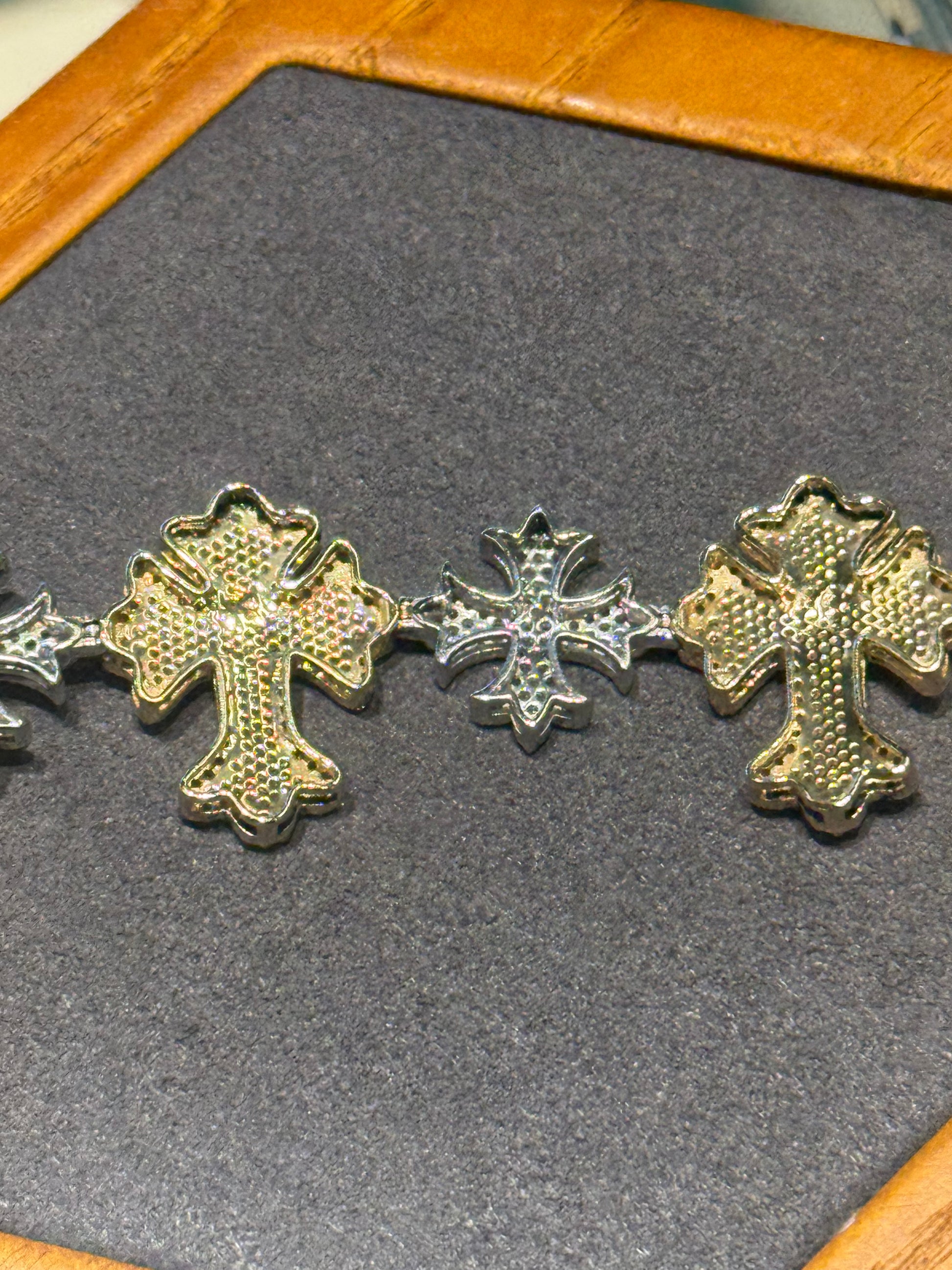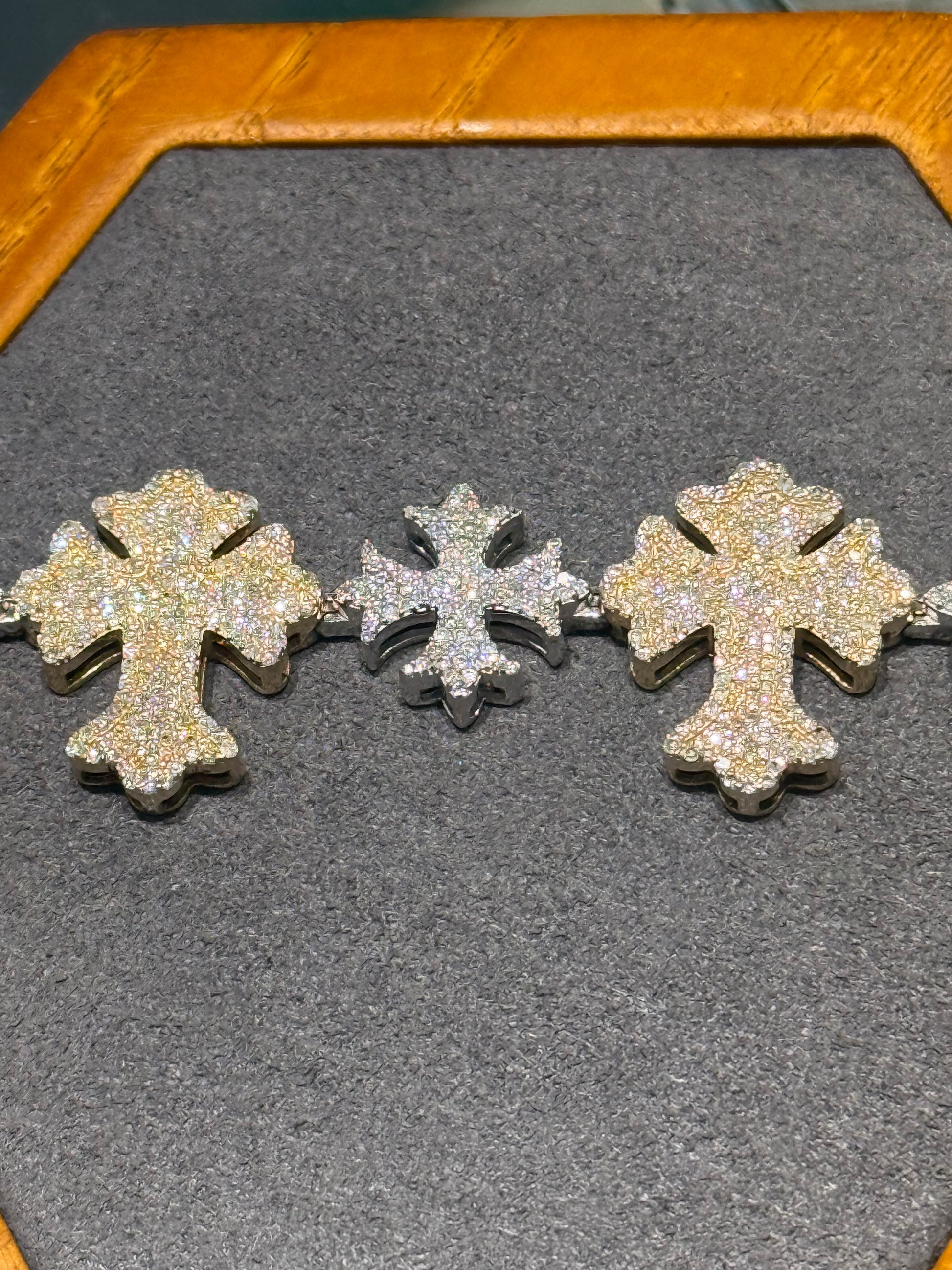 10k 2 tone gold 22.1g Cross design bracelet w/ 540 round brilliant diamonds 2.70ctw, 672 round brilliant diamonds 1.68ctw and 948 round brilliant cut diamonds 2.37ctw