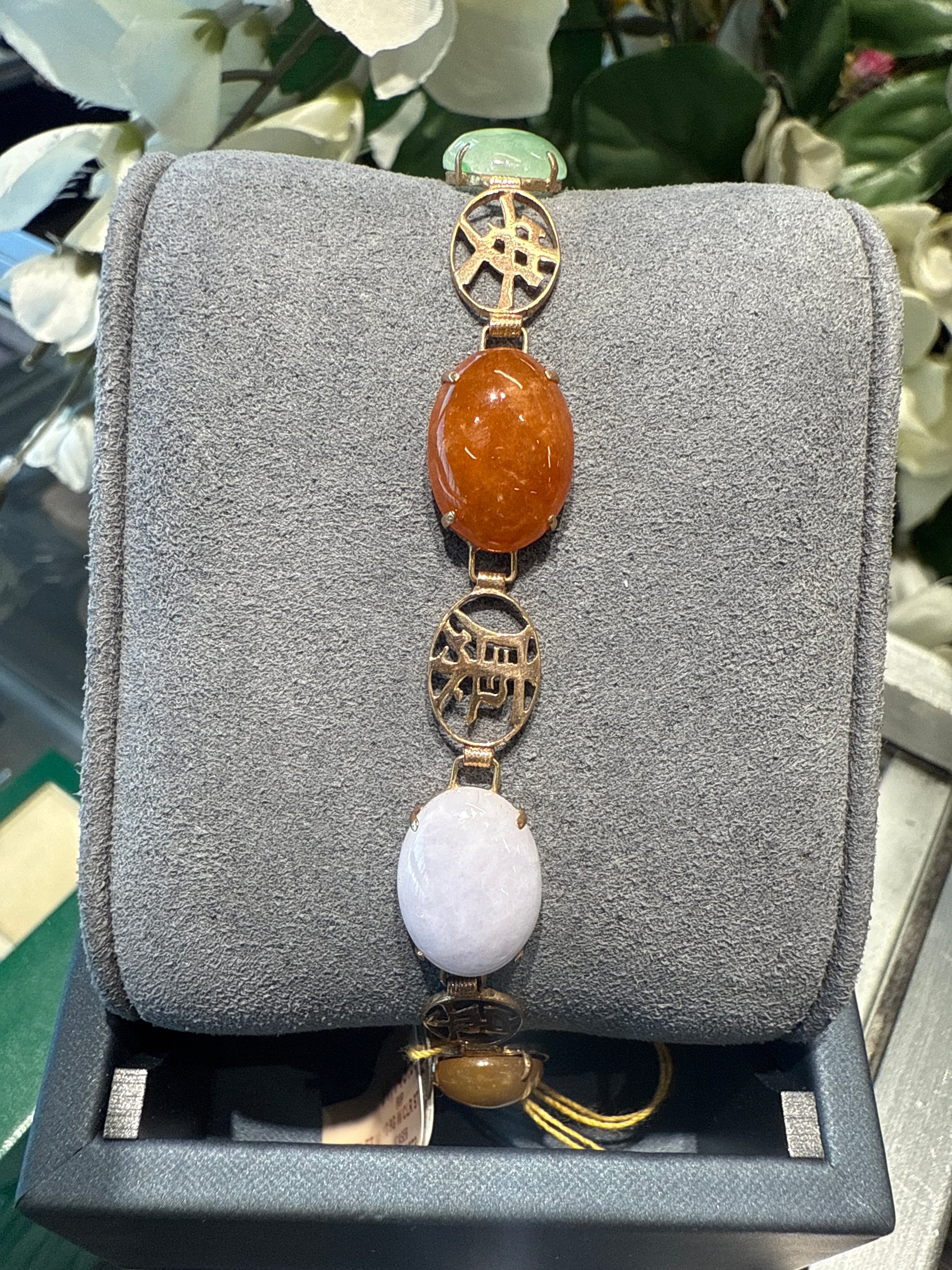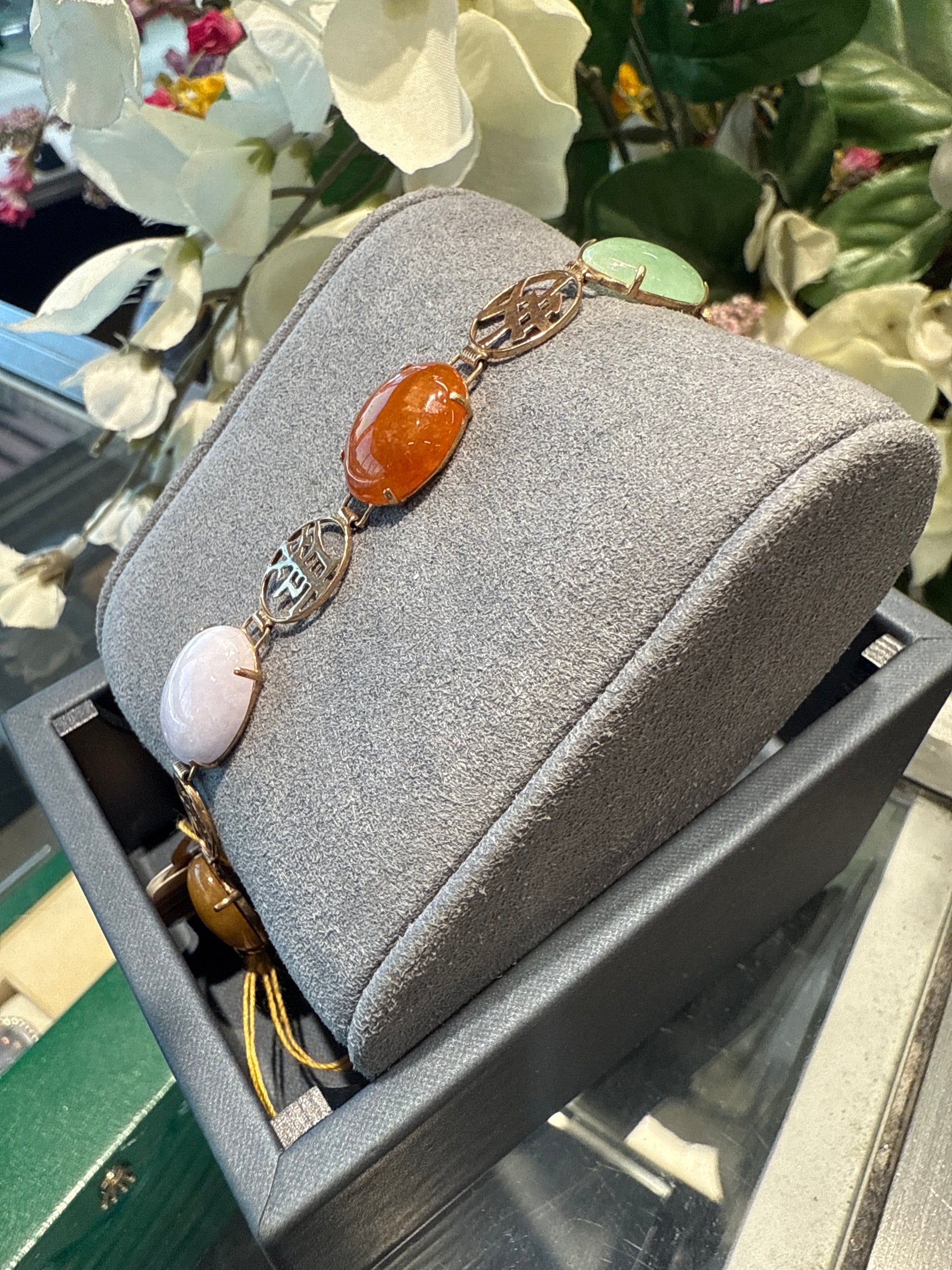 14k yellow gold bracelet with multicolored stones 9g 7 inches long