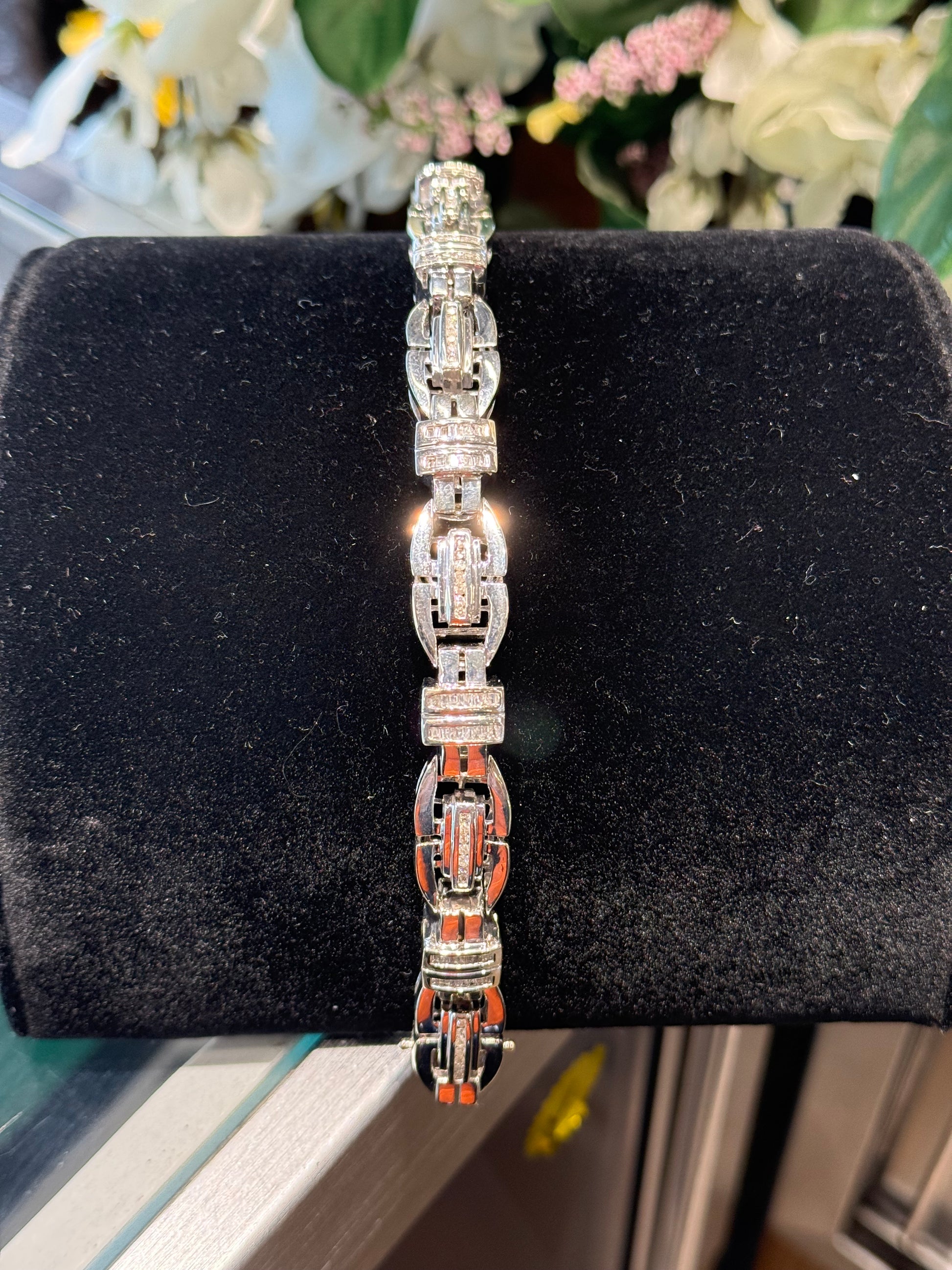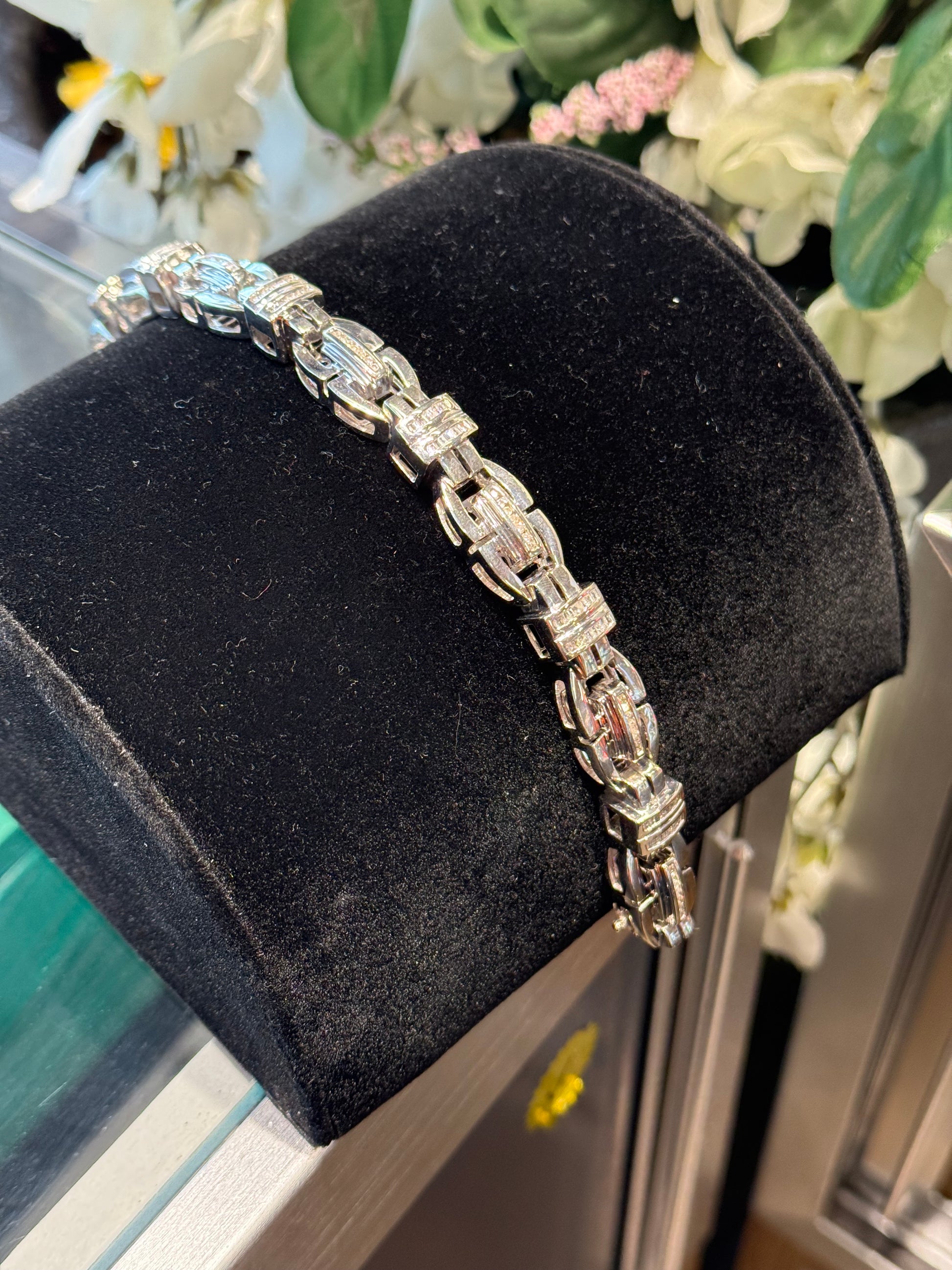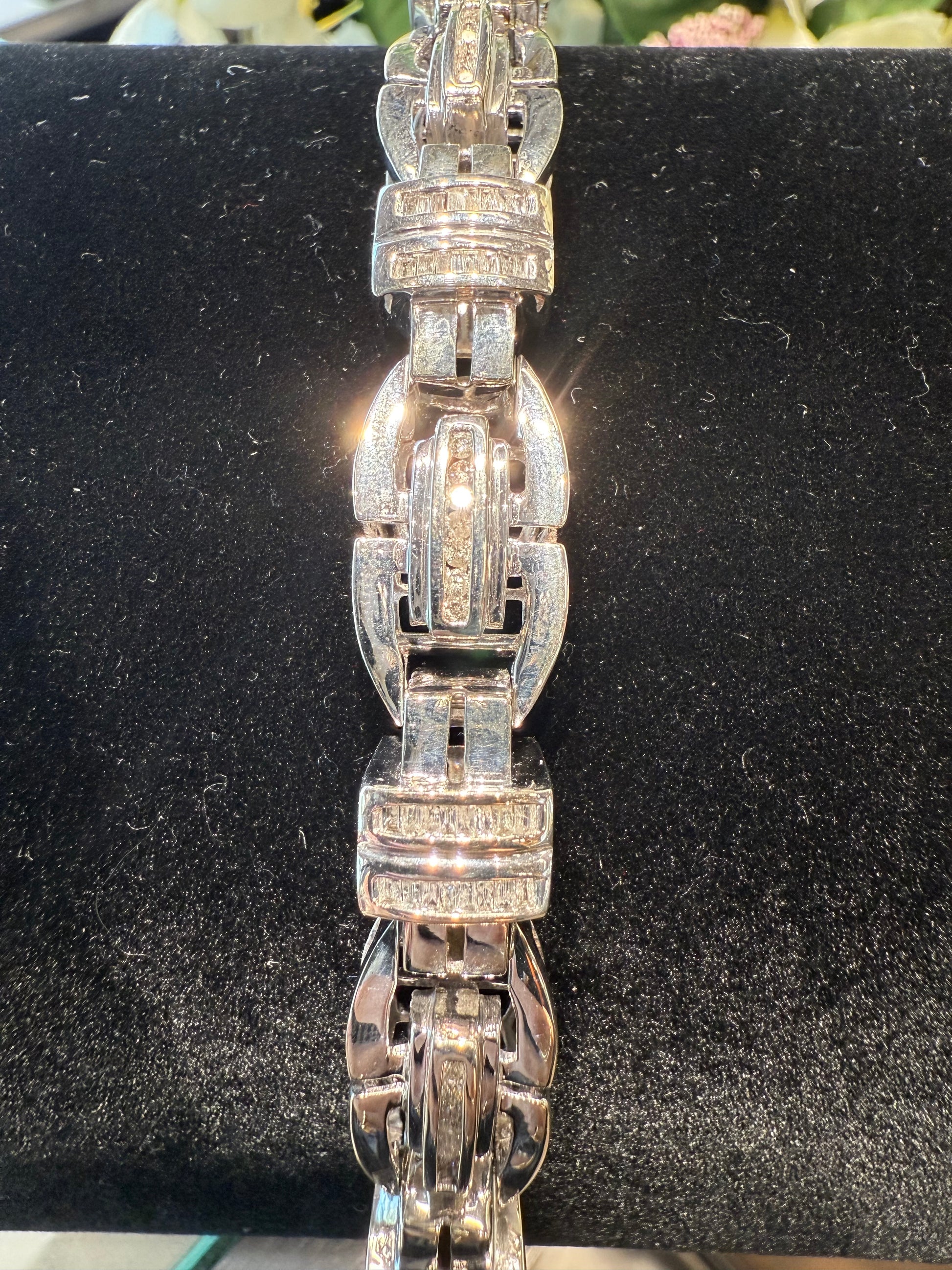 10k white gold 56.8g bracelet w/ 49 round brilliant cut diamonds 0.49ctw and 112 baguette cut diamonds 1.12ctw