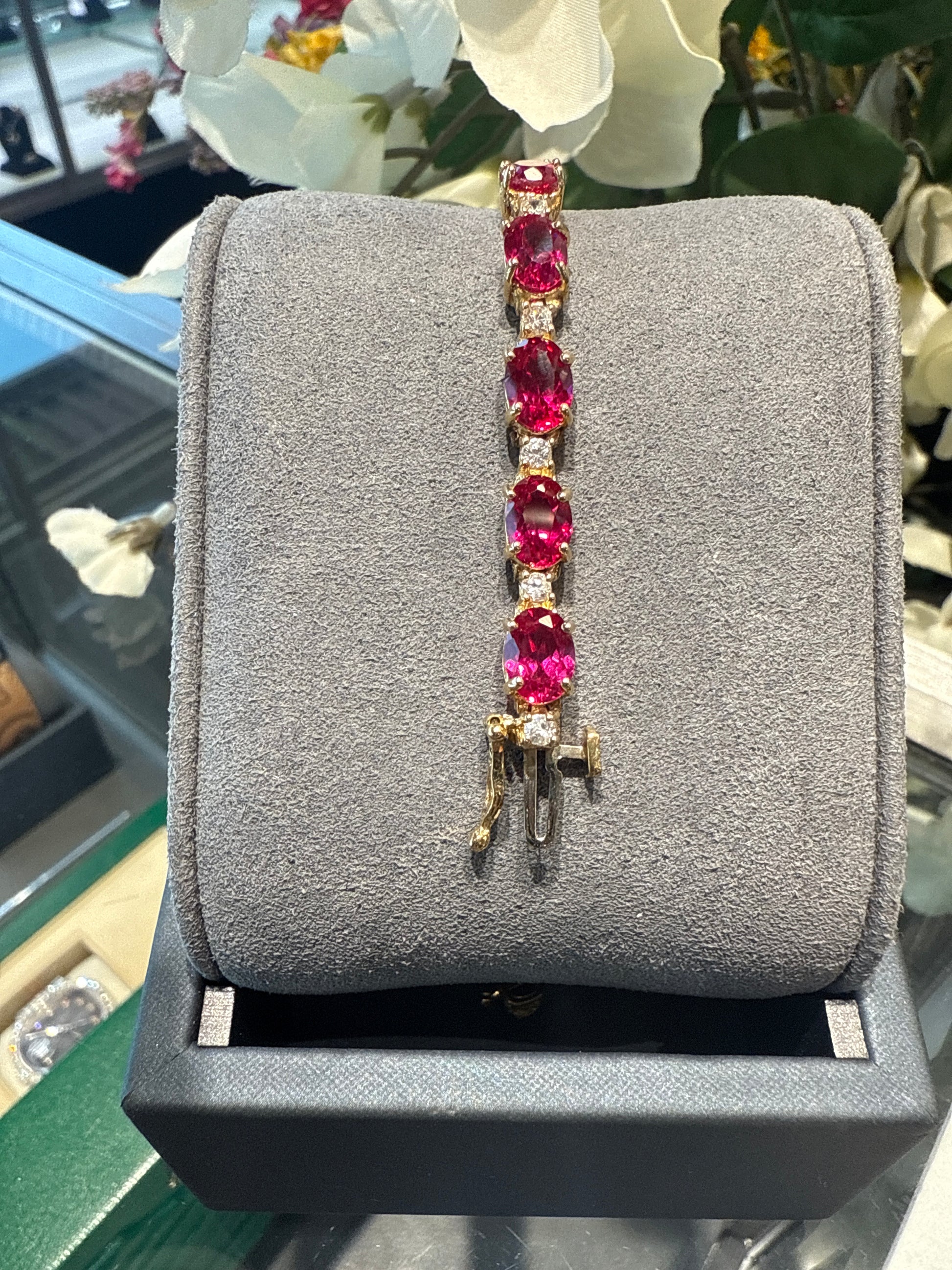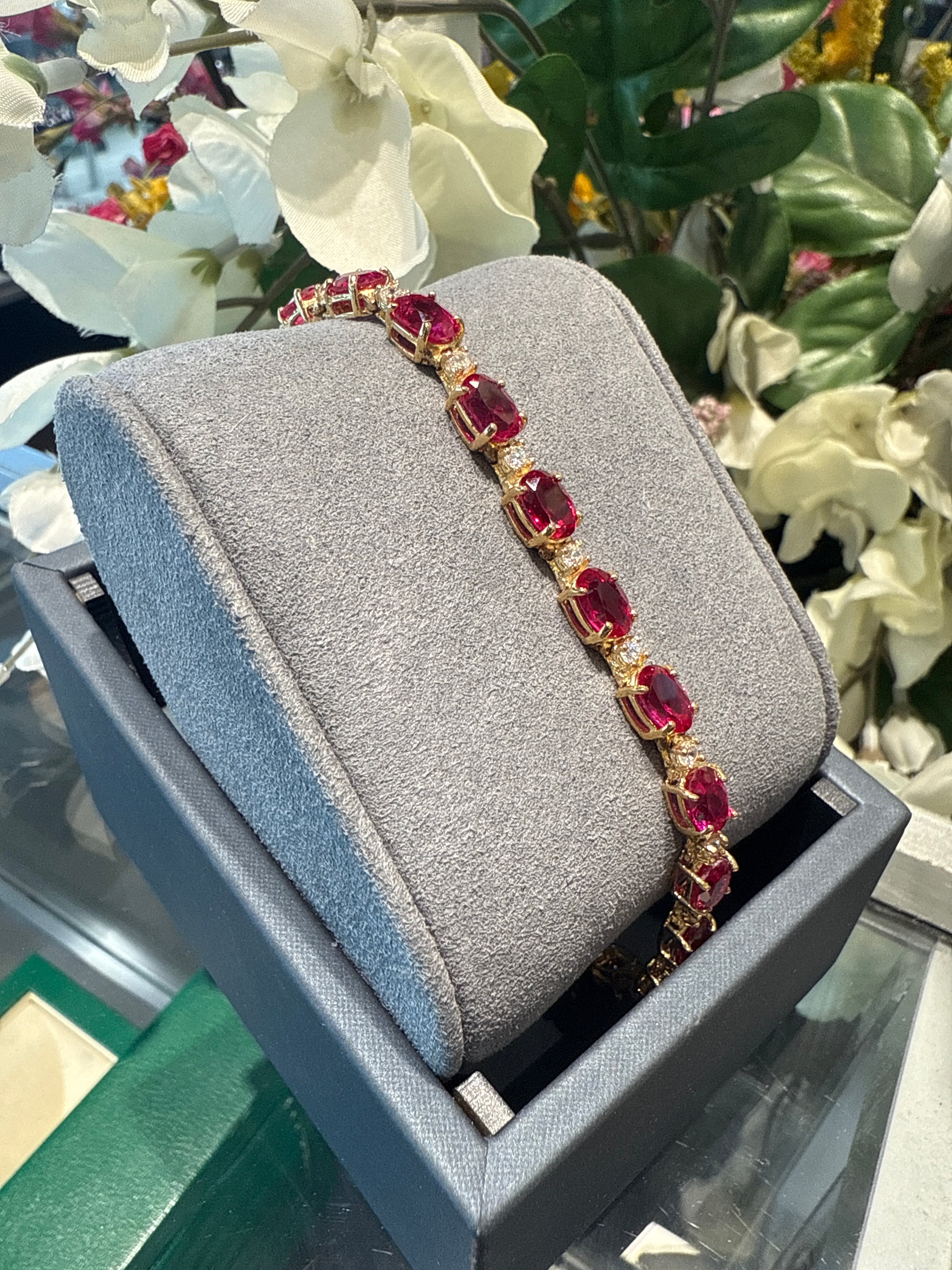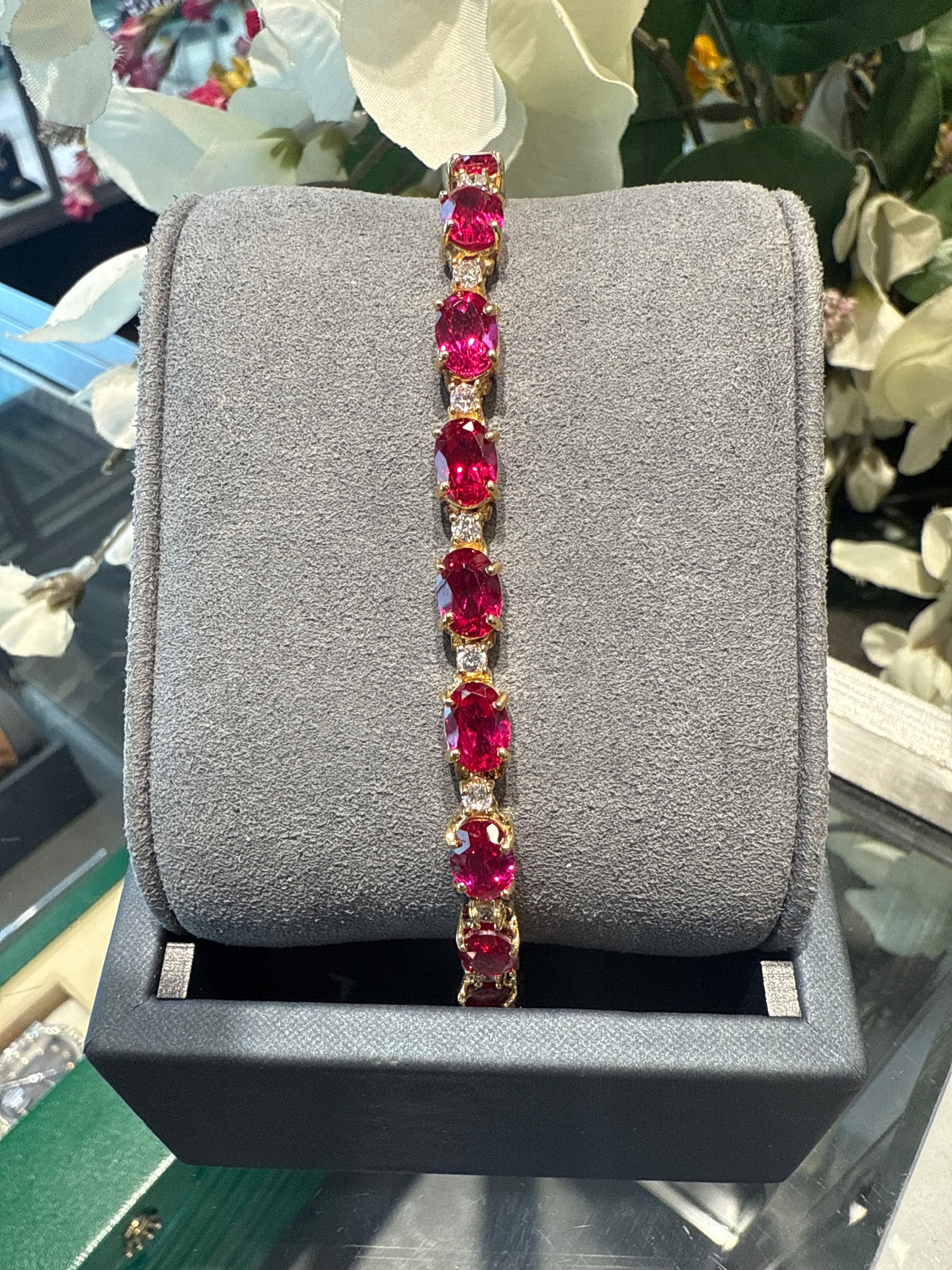 14k yellow gold bracelet with red stones and cubic zirconias 13.5g 7.25 inches long