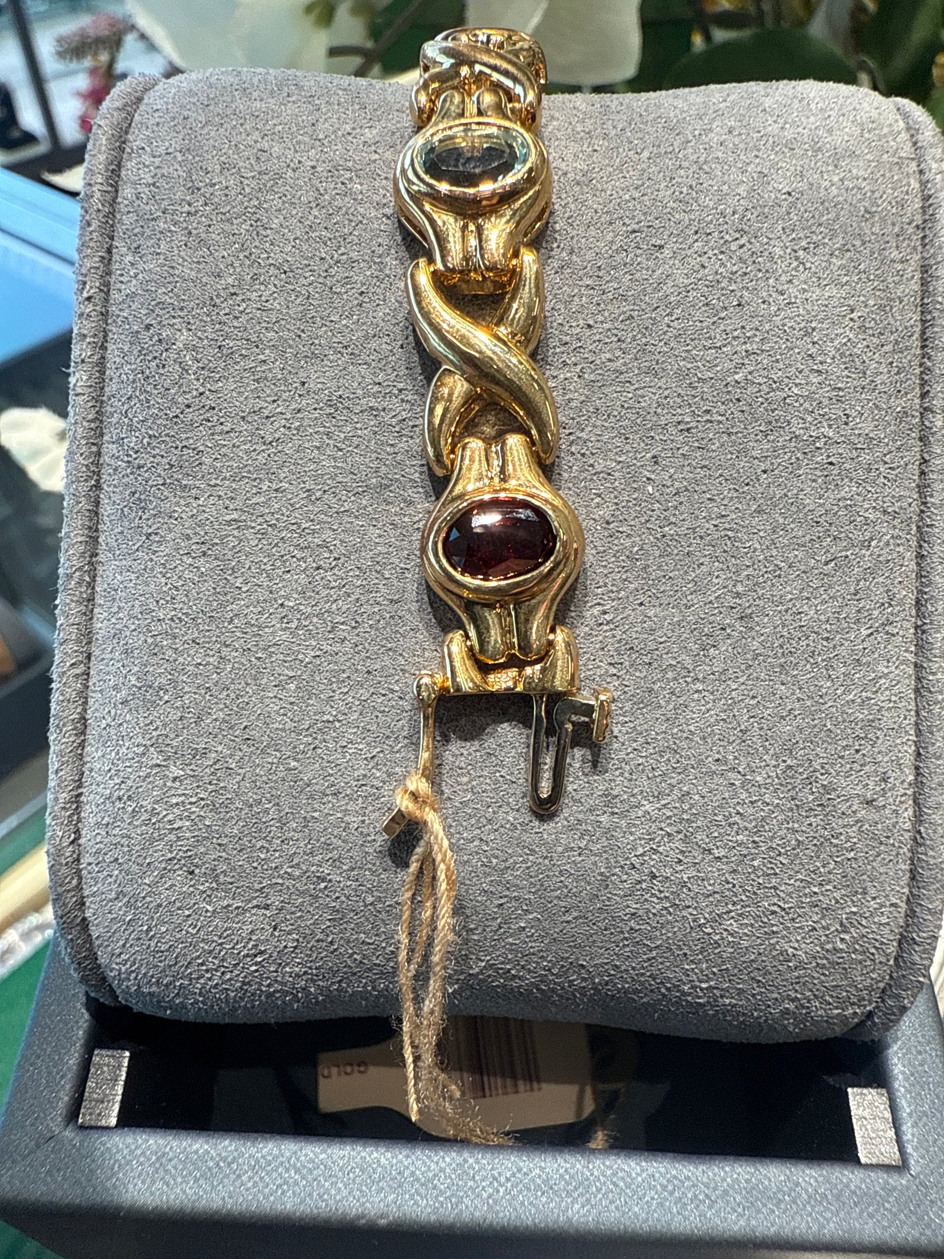 14k yellow gold bracelet with multicolored stones 26.2g 7.25 inches long