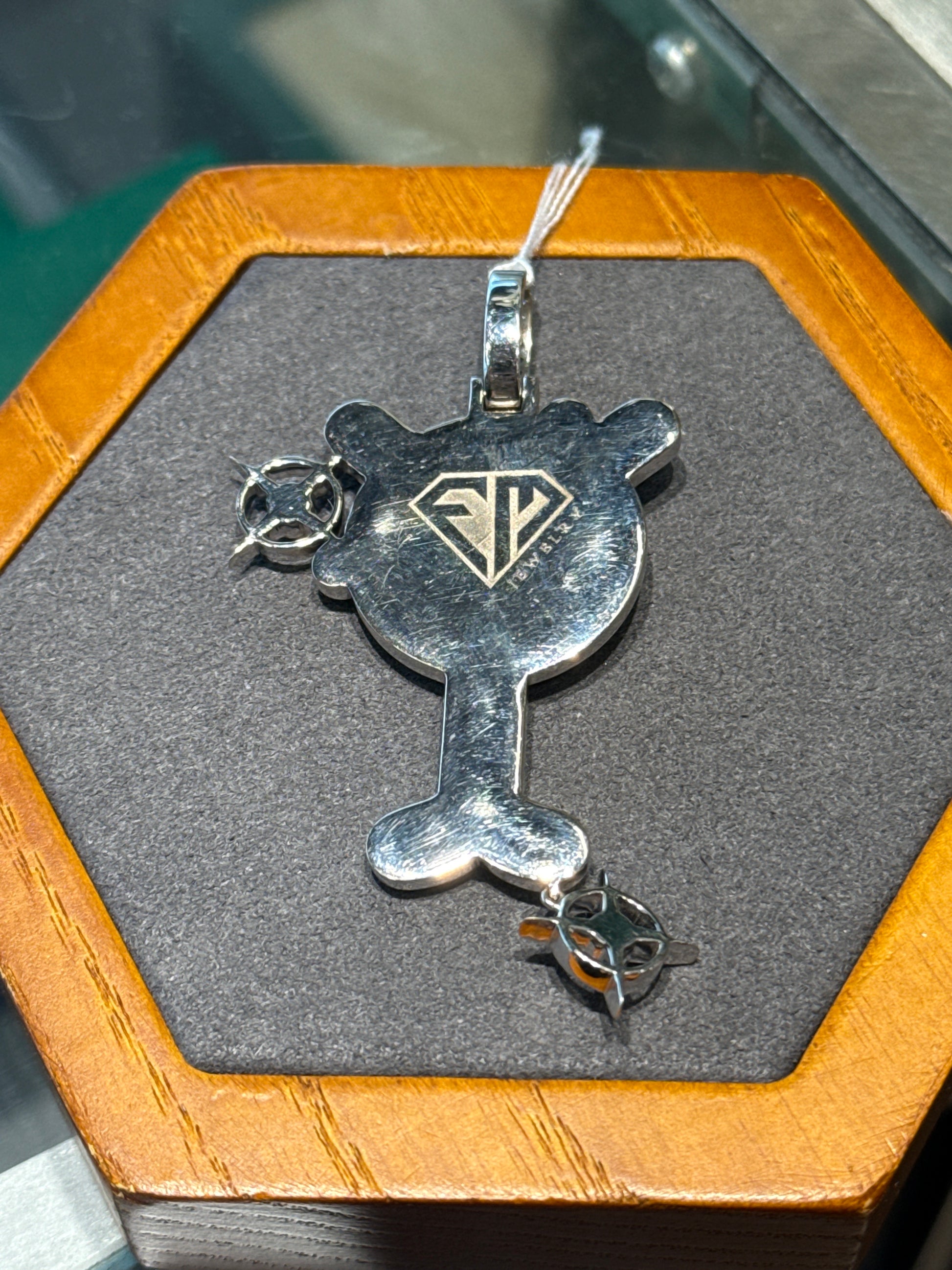 14k yellow gold 21.5g Pokémon Charm w/ 1 round cut sapphire 0.74ctw, 1 round brilliant cut diamond 0.14ctw, 12 round brilliant cut diamonds 0.36ctw, 22 round brilliant cut diamonds 0.22ctw and 7 round brilliant cut diamonds 0.02