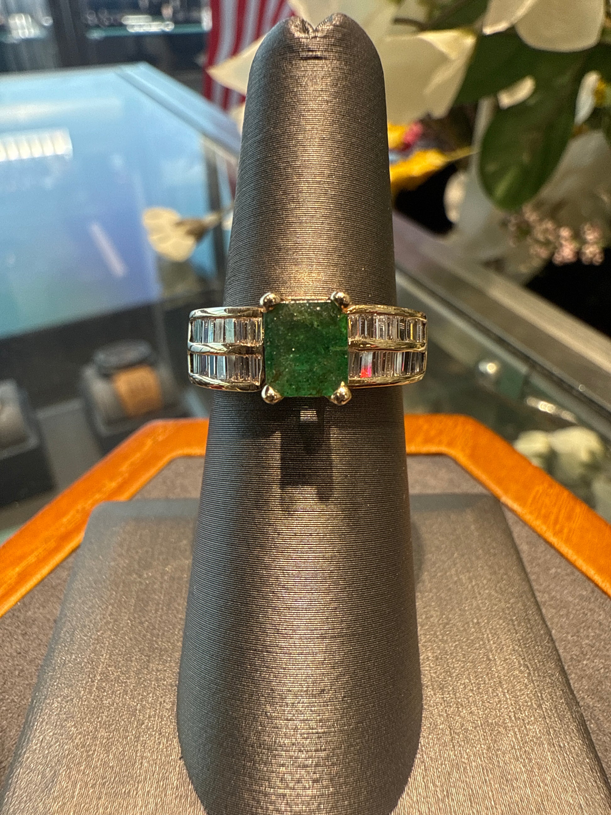 14k yellow gold ring with green stone and diamonds 0.72ctw 6.1g size 6.5