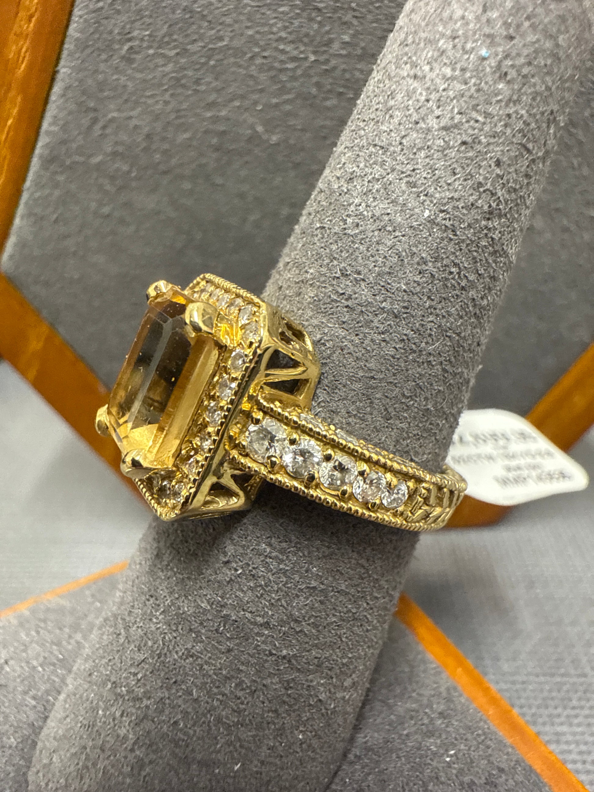 18k yellow gold ring with yellow stone and diamonds 1.02ctw 8.6g size 7