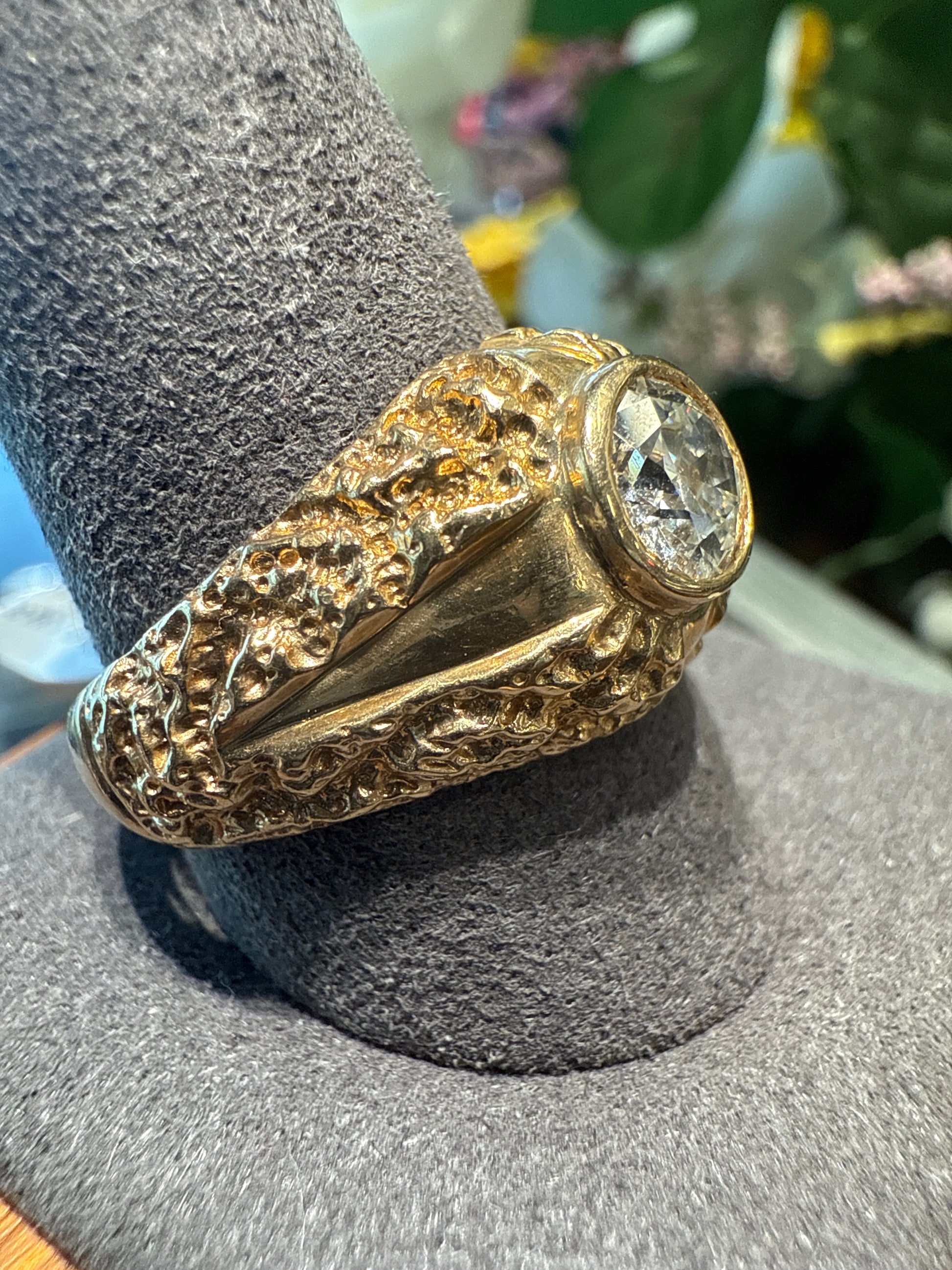 14k yellow gold 9.5g nugget ring w/ 1 round brilliant diamond 1.06ctw