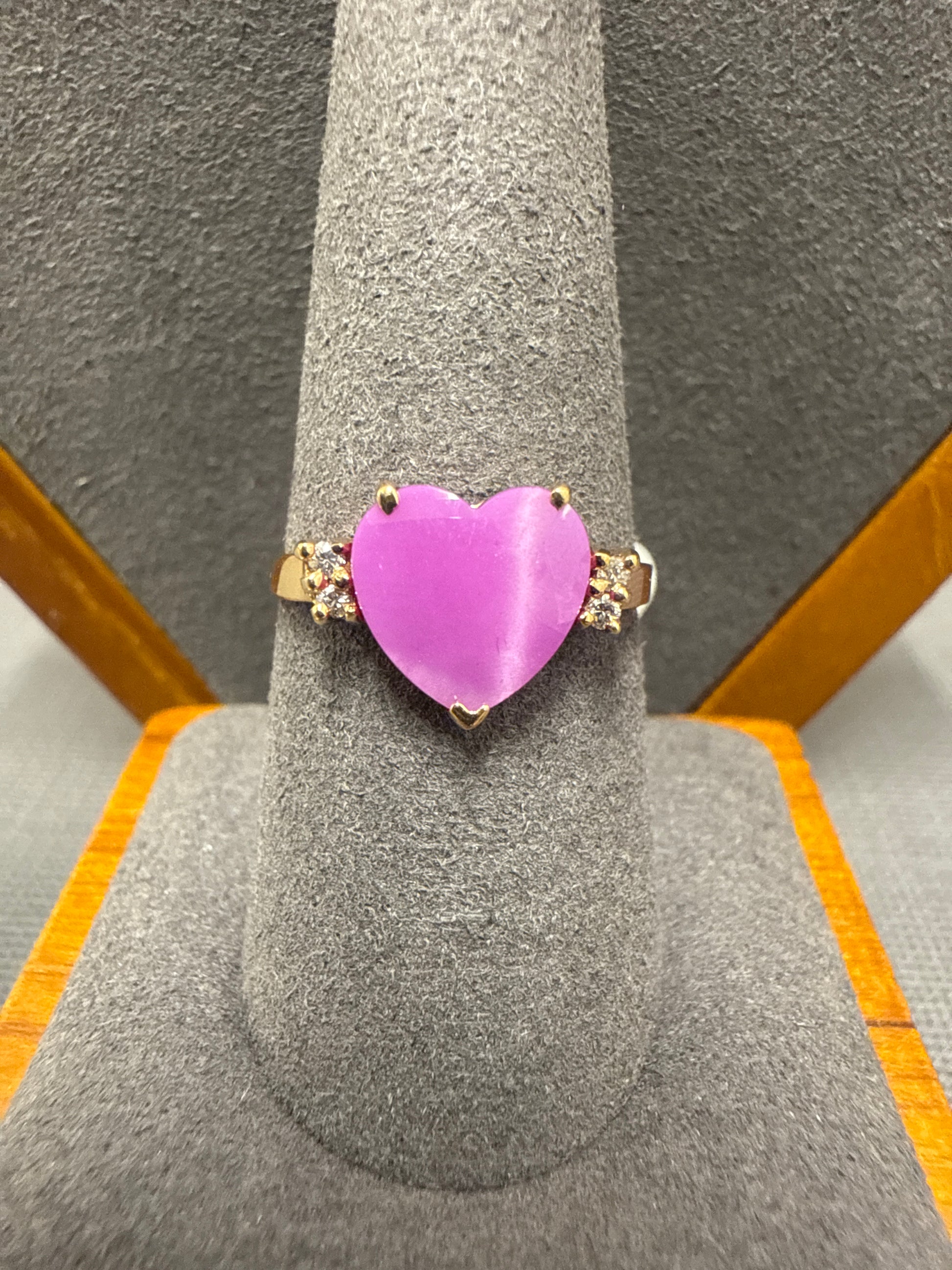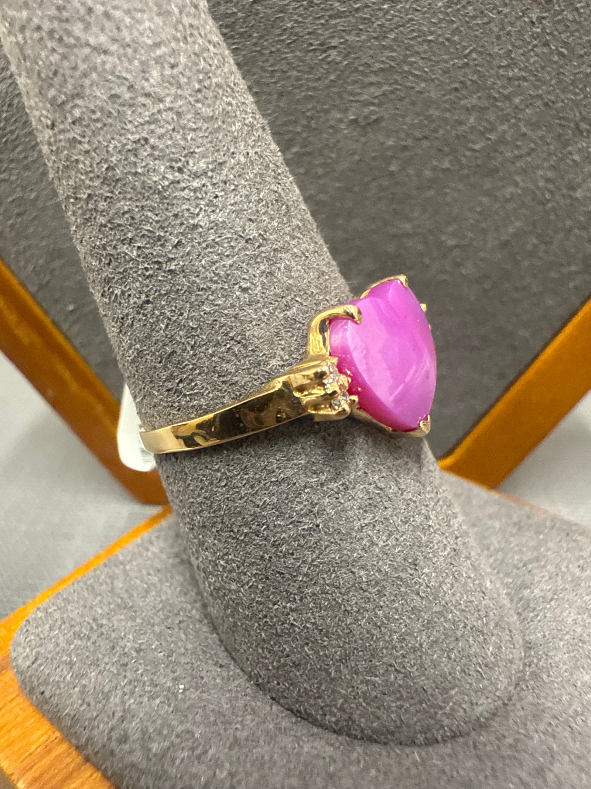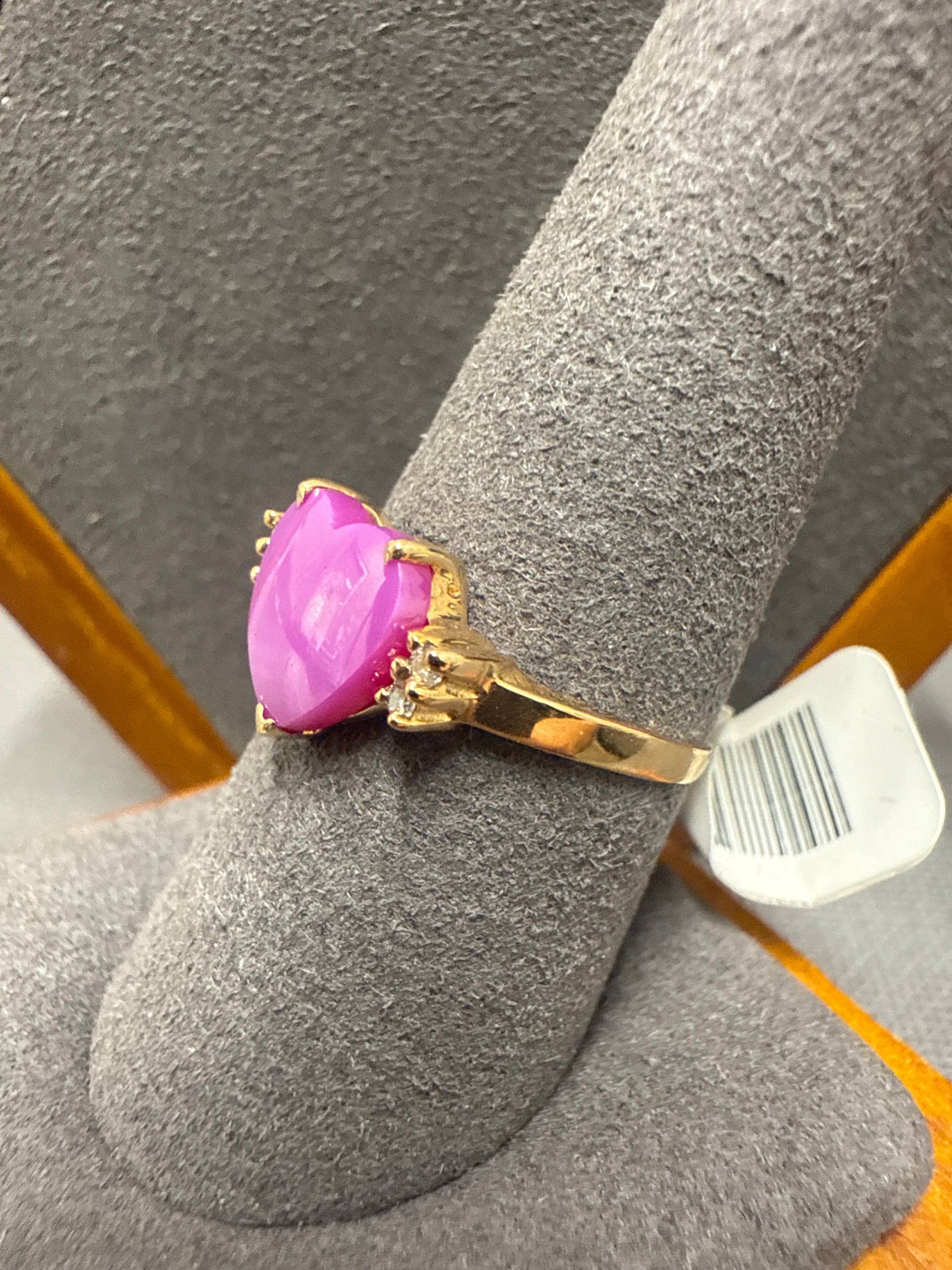 10k yellow gold ring with pink heart stone and diamonds 2.4g size 9