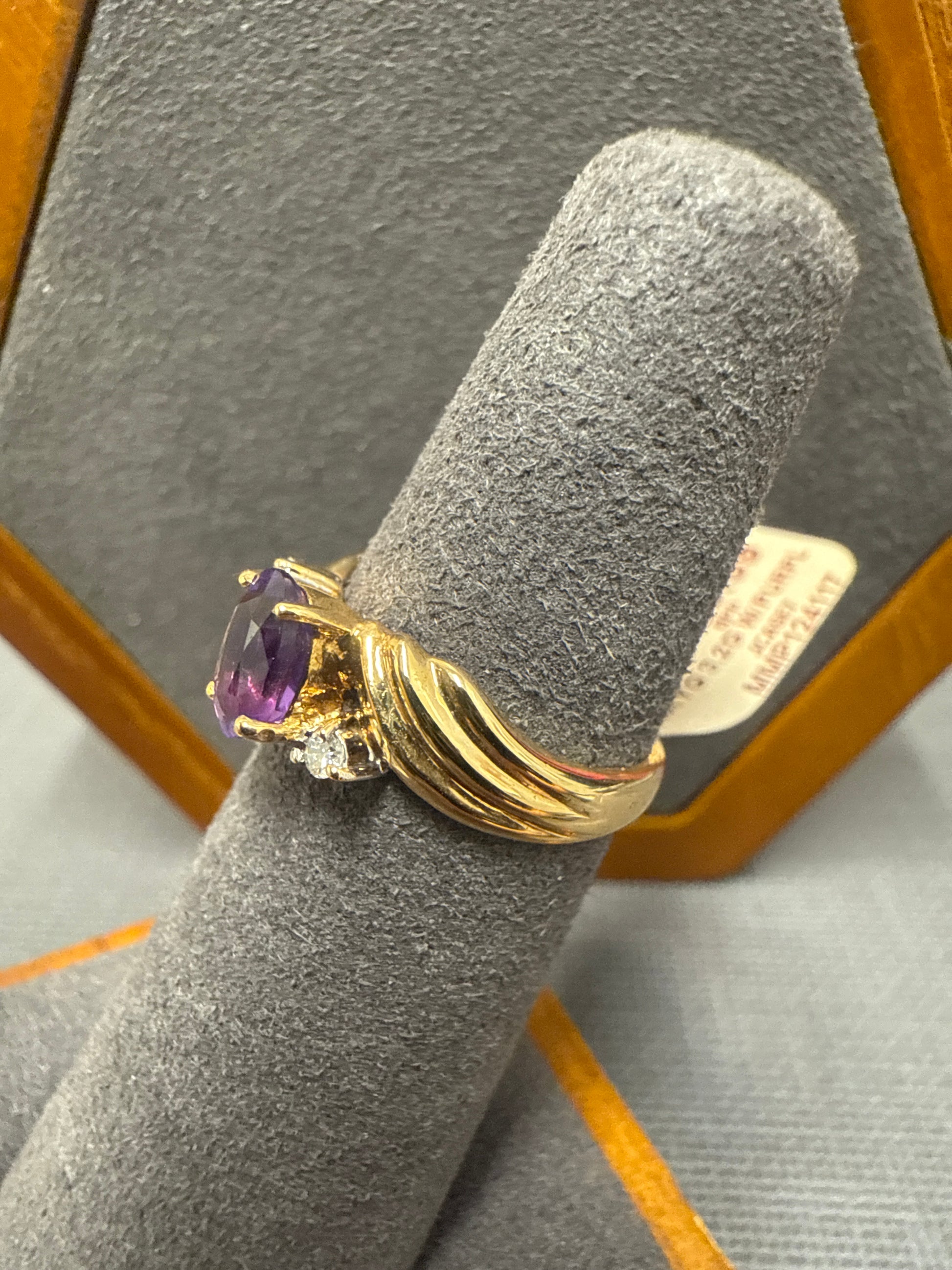 14k yellow gold ring with purple stone 3.2g size 5.5