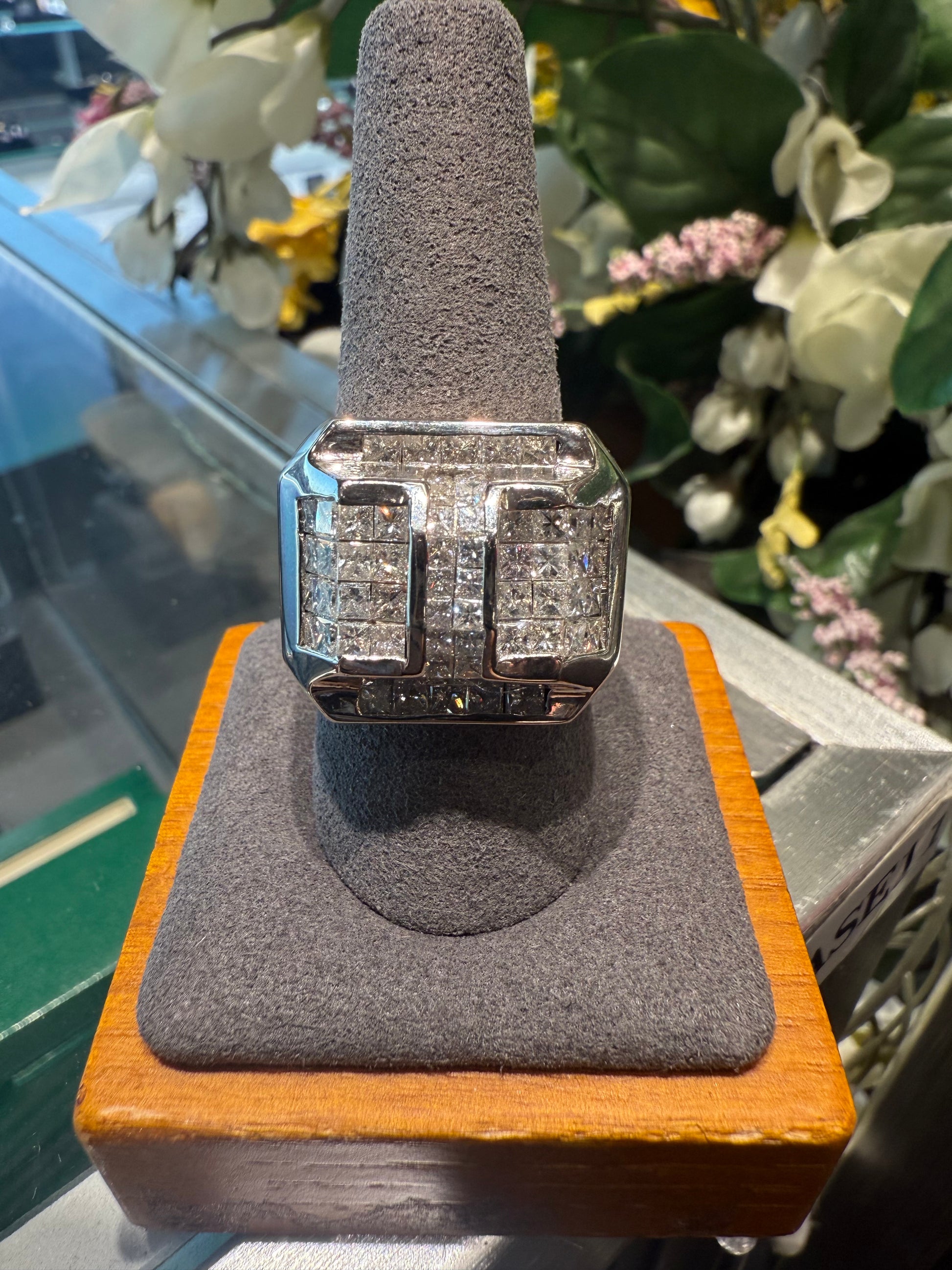10k white gold 39.2g ring w/ 60 round brilliant cut diamonds 4.00ctw