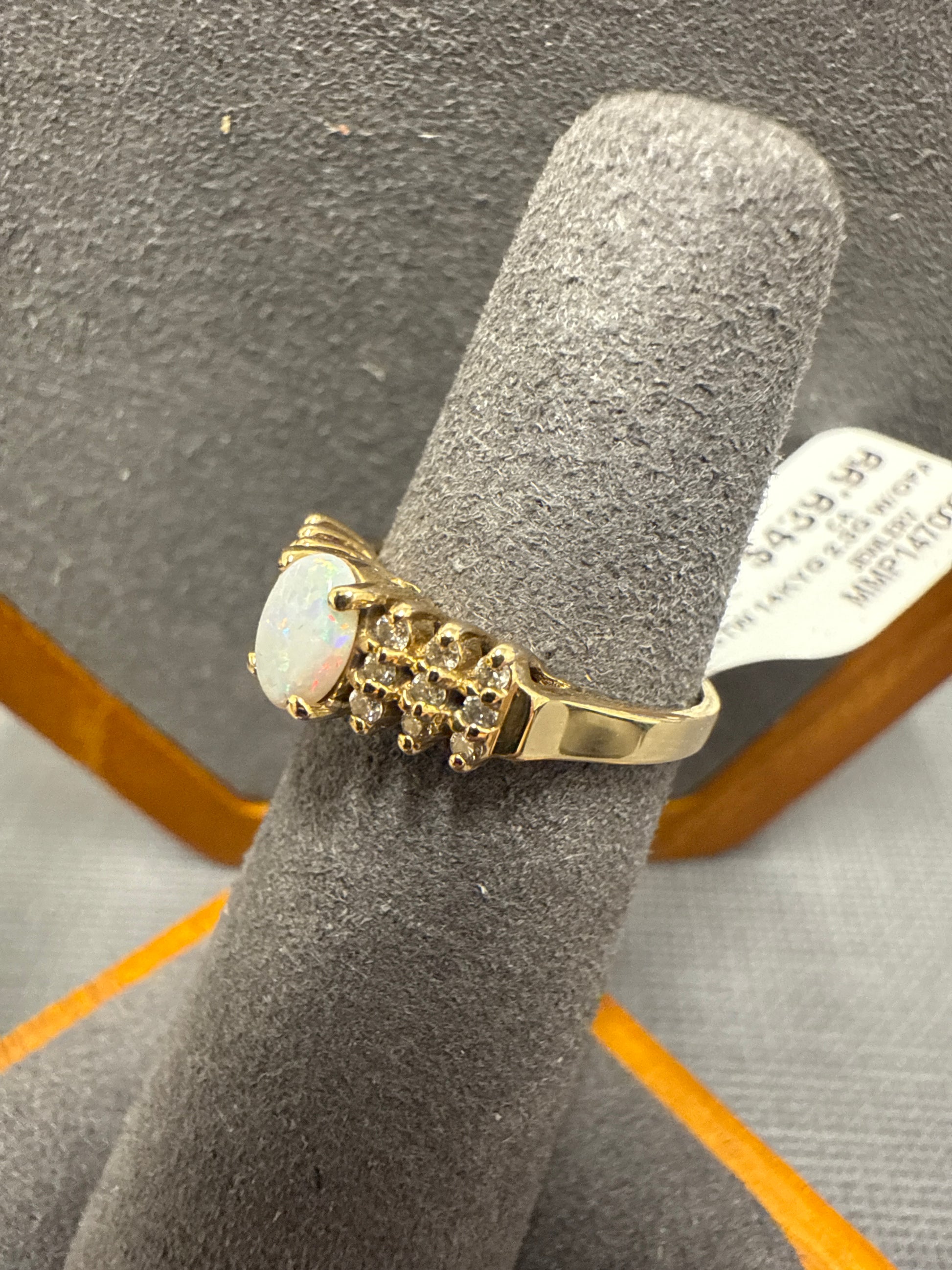 14k yellow gold Opal and diamond 0.18ctw ring 2.3g size 4.5