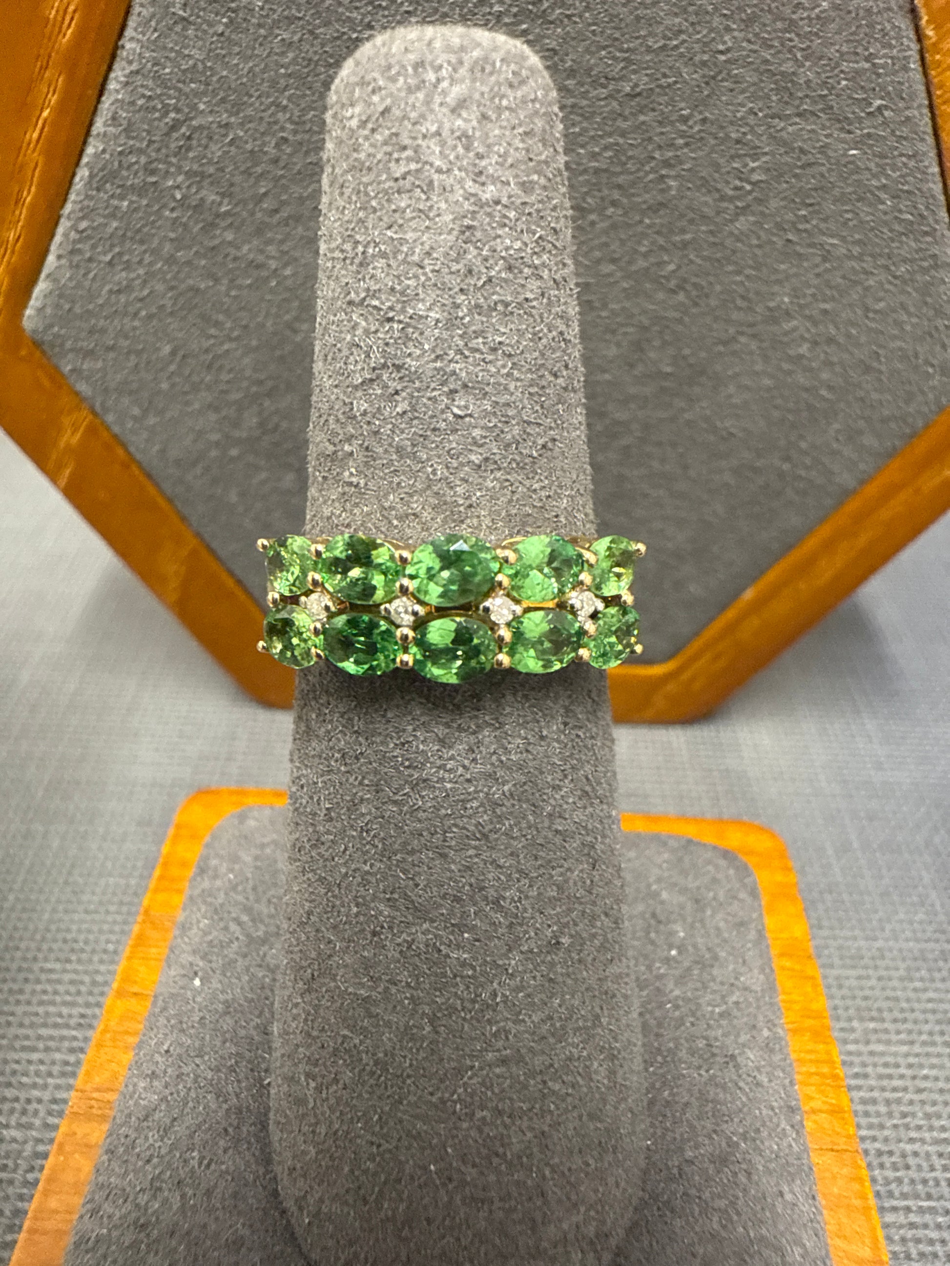 10k yellow gold ring with green stones and diamonds 2.3g size 6