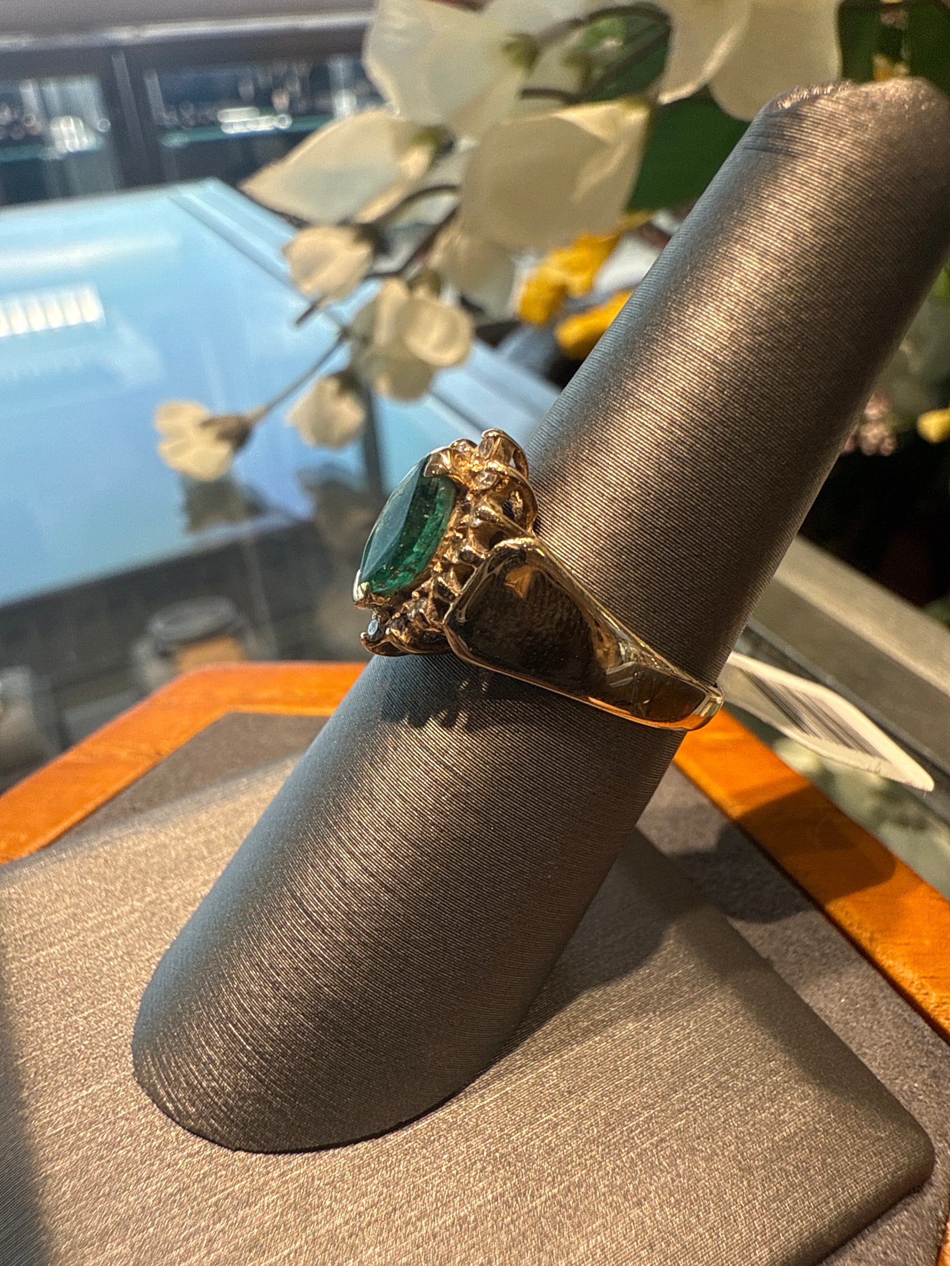14k yellow gold ring with green stones and diamonds 3.6g size 6