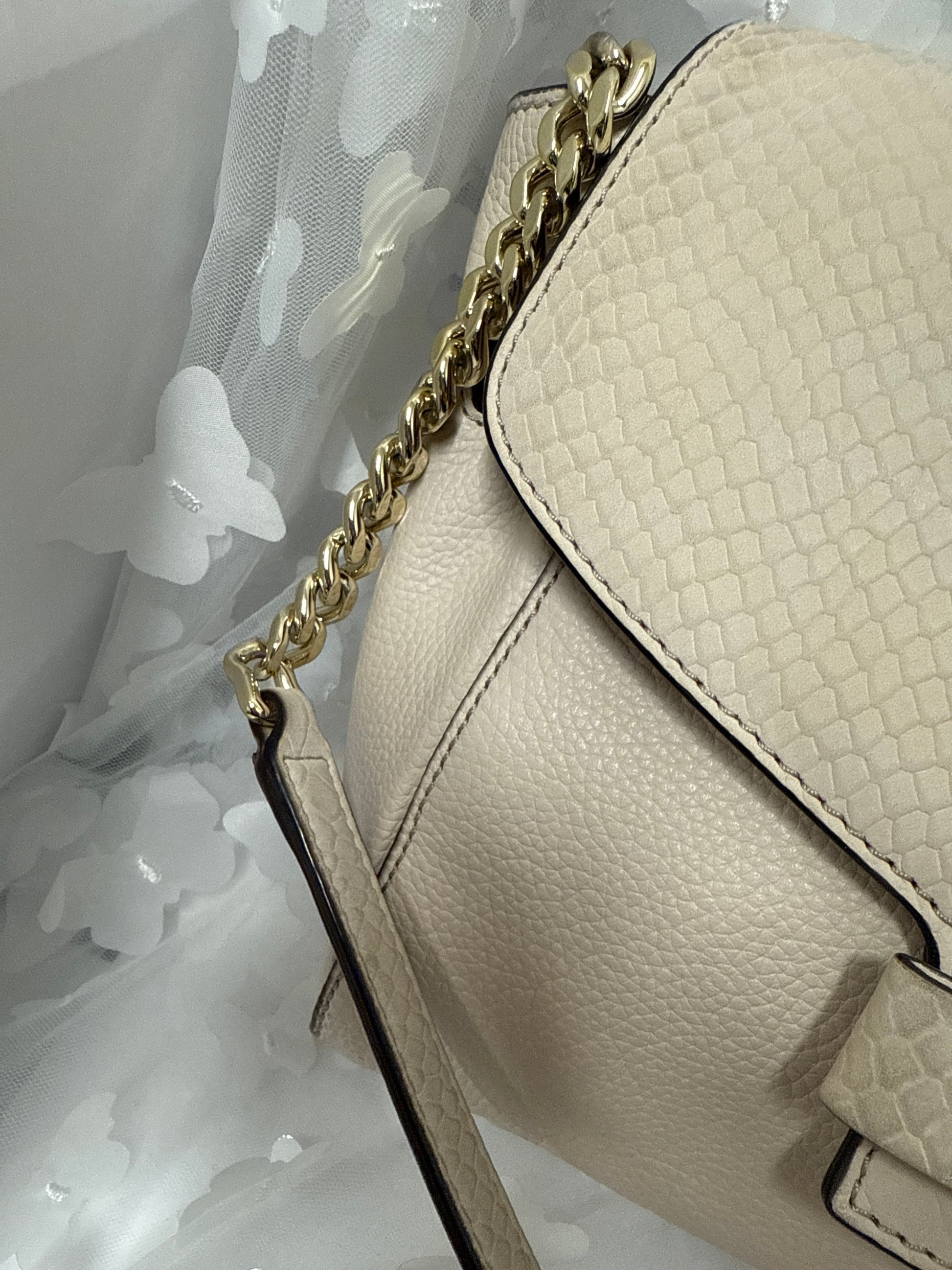 Kate Spade Hand Bag , snakeskin-patterned flap and a gold-tone chain strap interwoven with leather.