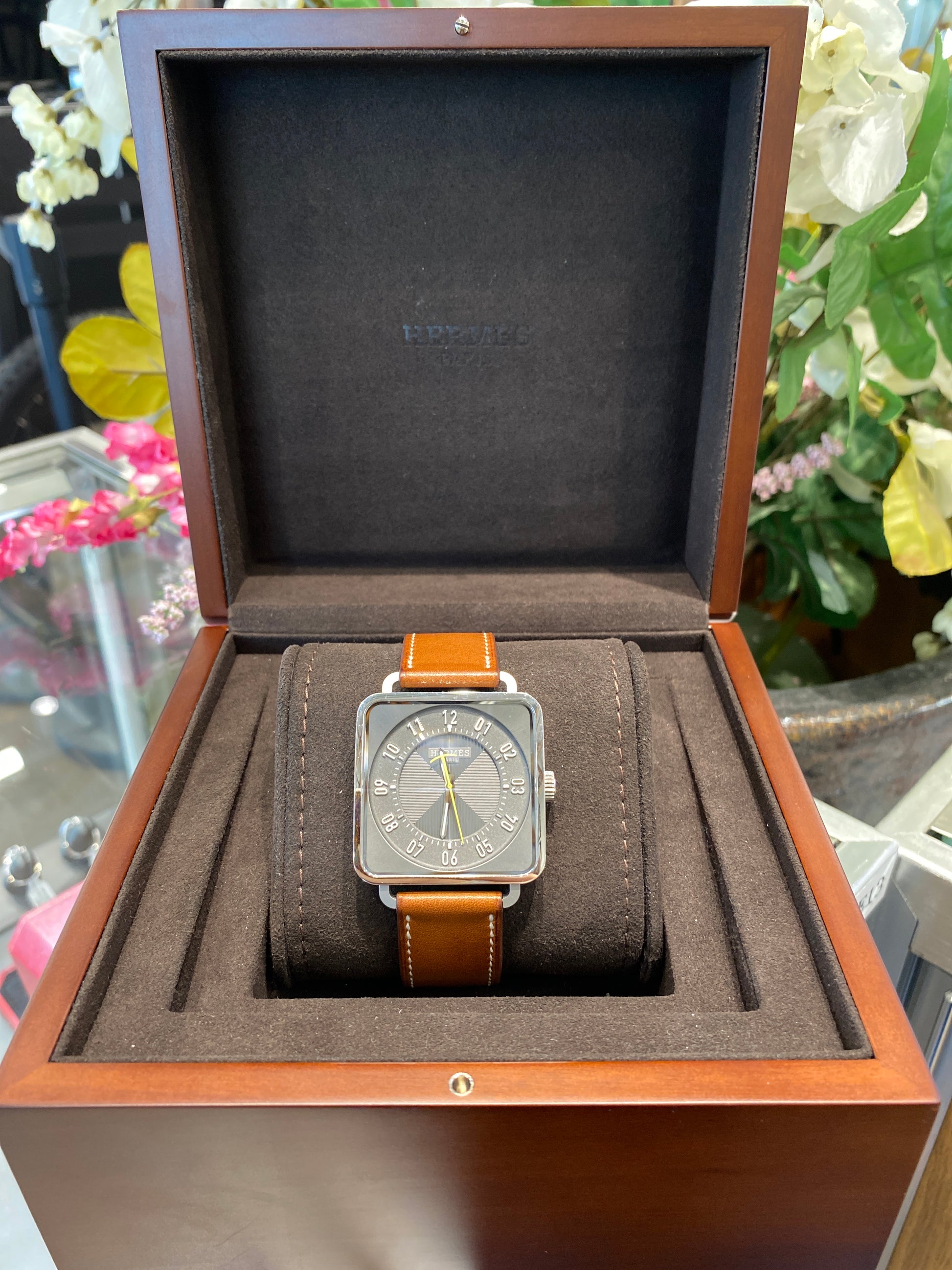 Hermes Carre H T12.710 Automatic Stainless Wristwatch With Leather Band 38mm